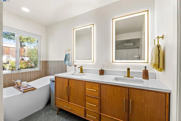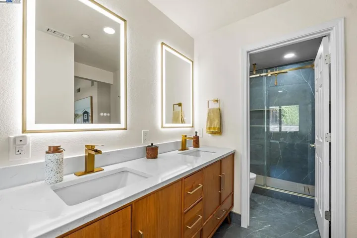 It’s all in the details with this beautifully remodeled Livermore gem! Nestled in the heart of town on a picturesque, storybook-like street just steps from parks and hiking trails, this home truly has it all inside & out. The open floor plan was designed for both comfort and entertaining, creating a spacious layout that flows seamlessly. The expansive gourmet kitchen is a showpiece—reimagined with custom wood cabinetry, a 60-inch Hallman range and vent hood, new appliances, and a reconfigured footprint perfect for gathering. A large folding glass door opens to the backyard for effortless indoor-outdoor living. Two converted outbuildings with HVAC provide ideal home offices, studios, or flex space. The primary bath features a luxurious soaking tub and spa-like shower, while the suite also offers a custom built-in closet and hidden TV lift cabinet. Additional highlights include built-in cabinetry in the living room, new flooring, extended driveway, new front sidewalk, and planter boxes with WiFi-controlled sprinklers. Mini-split systems in the bedrooms and garage keep the home comfortable year-round. With quick access to downtown Livermore, I-580, Stanley Blvd, and Highway 84, this home delivers convenience, character, and everyday joy!