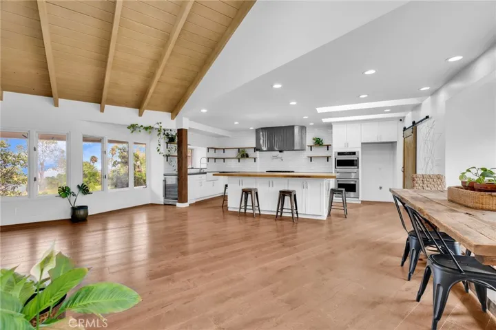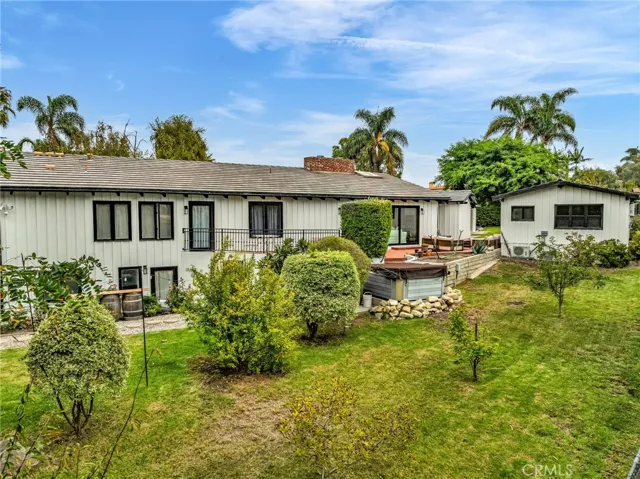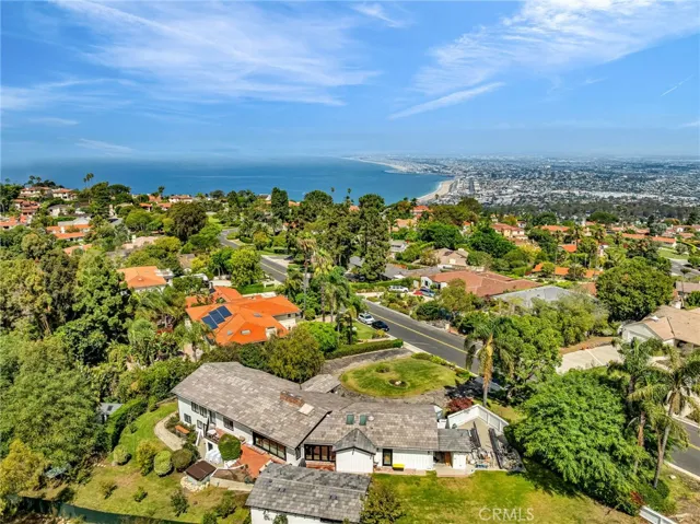 Welcome to this beautifully renovated home with a new guest house, located in the highly desirable Monte Malaga neighborhood of Palos Verdes Estates. This stunning residence offers a bright open floor plan with soaring beamed ceilings, expansive living areas, large windows and glass sliding doors to bring in abundant natural light; featuring a living room, family room, dual-sided see thru limestone fireplace from living room to family room, beautiful modern updated kitchen with quartz counter tops and a large center island, open dining area, large pantry, recessed lighting, ceiling fans, a two car garage and circular driveway. The home features 4 spacious bedrooms and 4 fully updated bathrooms. Three bedrooms including the main bedroom and bathroom are conveniently located on the main level, while the fourth bedroom and bath are privately situated downstairs with a separate entrance from the rear yard. The newly constructed ADU includes a modern kitchen, open living space, bedroom, bathroom, and washer/dryer closet—perfect for guests, extended family, or rental income. The main house is 4 bed 4 bath and approximately 3250 sf, the ADU is 1 bed 1 bath and 508 sf, and outside bath 60 sf. The expansive backyard is a true retreat with numerous fruit trees, a tranquil zen garden, an outdoor shed ideal for a craft room, outdoor showers, and ample space to add a pool. From the front of the property, enjoy peek-a-boo ocean and coastline views on clear days.