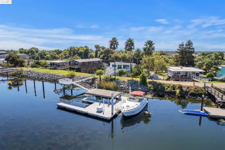 Waterfront property on Piper Slough, all about the Location, Location, Location! When you know, you know! 4355 Willow Rd offers 93 feet of waterfront on Piper Slough, situated in-between Russo’s Marina and Sugar Barge Marina and directly across from the opening to Franks Tract! Now you know! The expansive double U-dock measures approximately 36×40 with a covered slip and an open slip, plus a 12×8 platform deck overlooking the water. The dock used to be home to a seaplane! The primary home includes a separate studio on the lower level with a full bath and kitchen. The middle floor features 3 bedrooms all on one level, with kitchen and living room on the upper level featuring large picture windows to maximize your waterfront views and natural light, not to mention the breathtaking sunrises year round! There is a separate detached building with an additional 200 sqft perfect for office, game room, etc. Property has several fruit and palm trees, gated entry, single car garage plus covered carport.