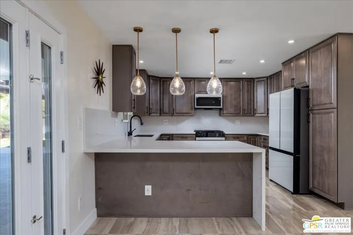 Gorgeous Remodeled Mid-Century Alexender Swiss Style home located in the Racquet Club East area of Palm Springs. This beautifully remodeled home has all the amenities and an incredible floor plan. The open floor plan features 3 spacious bedrooms, 2 bathrooms as well as a office with its own entry. The kitchen offers new top of the line Samsung Bespoke Appliances to help you make your dream kitchen a reality, as well as a mini bar area to help you entertain your guests in your gorgeous Mid-Century home. The backyard features an inviting pool, covered patio, Barbecue area, outside shower, and gorgeous mountain views. The home is only minutes from downtown Palm Springs with all the great Shops, Restaurants, Maryln Monroe statue, Museum, Hiking Trails, and the famous Aerial Tramway. This iconic Alexnader Swiss style home won’t disappoint you and is a must see. The property is also for sale and the seller may entertain an offer for rent to own.