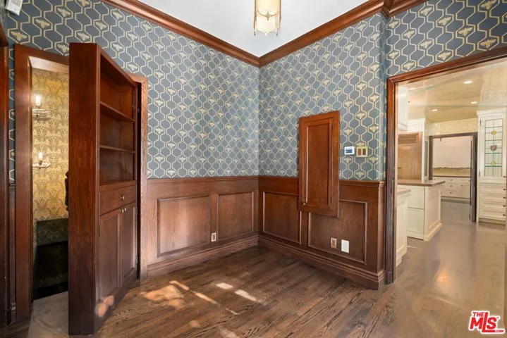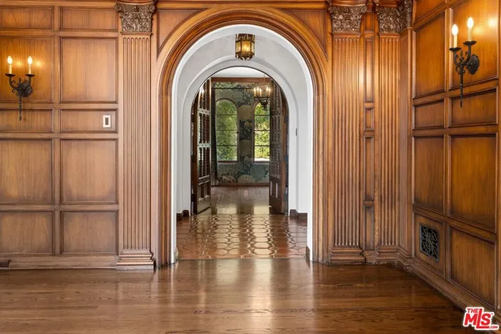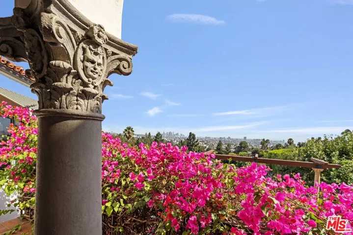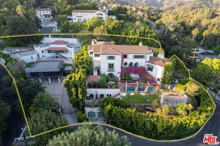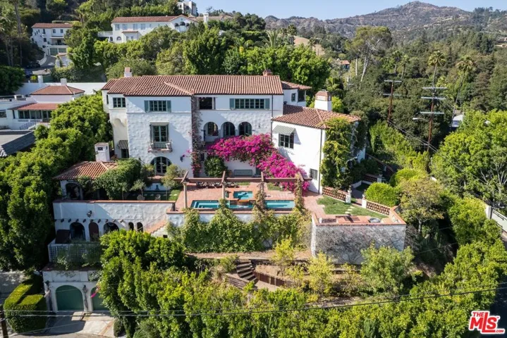 This grand Mills Act estate, known as “The Victor Rosetti Residence,” is an exceptional example of Paul Revere Williams’ iconic Spanish Colonial Revival style that strongly influenced California architecture. Nestled in the lush greenery of Griffith Park, the property is a sprawling compound with expansive views that, despite its impressive scale, still manages to feel warm and intimate. Superbly restored, tastefully updated, and lovingly cared for, it blends historic charm with architectural beauty in the prestigious Los Feliz Oaks neighborhood. With picture-perfect views of The Griffith Observatory and sweeping 180-degree vistas across Los Angeles, the estate conveys both the grandeur of a palatial residence and the ambiance of a true home. The main residence boasts many intricate and artistic details throughout, including a wood-paneled library, coffered and hand-painted ceilings, three ornate fireplaces, a wine room, cozy alcoves, and stained glass windows. The large kitchen, with its original floor-to-ceiling tiles, has been renovated with superior appliances while preserving its period charm. A stylish butler’s pantry adjoins with a separate dishwasher, wet bar, and a large warming oven. From there, a beautifully preserved wooden swing door opens to a remarkable wood-paneled dining room and a lovely breakfast room. Additional comforts include a steam shower, an operational dumbwaiter that services all three floors, two walk-in laundry rooms, a media room with original hand-painted beams, a cozy pub nook, and a secret bookcase door leading to the bottom floor. The grounds evoke a resort-like setting with a shimmering pool surrounded by a summer lounge area, outdoor gas fire pit, and a barrel-tiled roof pergola featuring a double-sided fireplace and outdoor kitchen for al fresco dining. A secret garden, complete with a koi pond, small citrus grove, landscaped grounds, multiple fountains, and pathways offer moments of tranquility immersed in nature. Two additional spaces, each with separate entrances, full bathrooms, and kitchenettes extend the property’s versatility–one has served as a sizable gym, while the other is currently occupied by 24/7 security personnel. The adjoining property enhances the estate with a newly refurbished 1-bedroom, 1-bath pool house, a newly renovated pool, and a 1500-sf home offered with approved city plans for interior completion, allowing customization to suit any need. It has its own two-car garage, two privately gated entrances, and a beautifully landscaped yard surrounding the pool. Between the two properties, there is parking for approximately 25 cars inside the gates. This isn’t just a house; it’s a very special experience and must be seen to be believed. Set in a quiet neighborhood, the residence feels like a private Mediterranean retreat, while still only minutes from many acclaimed restaurants, artisan shops, cafes, and bars, with a short walk to some of the best hiking trails in the city. A gem in Paul Williams’ incredible portfolio, “The Victor Rosetti Residence,” has had only four owners and is unlikely to come on the market again soon, making it a once-in-a-lifetime opportunity to live in a piece of architectural history.