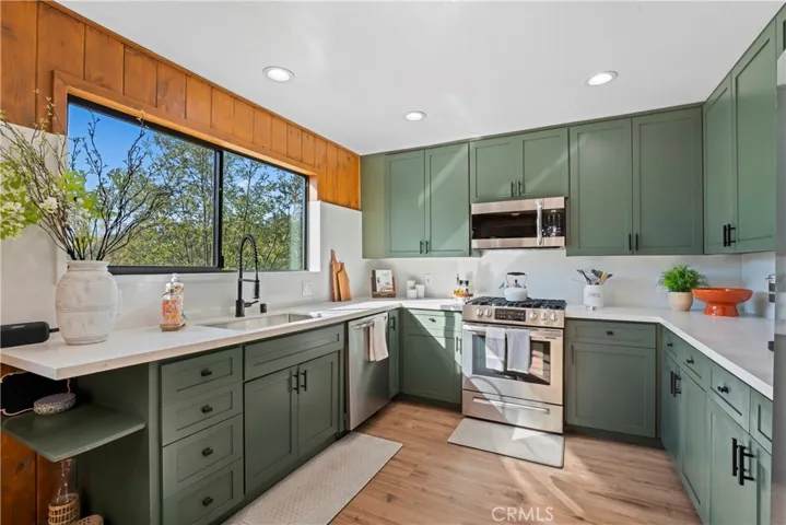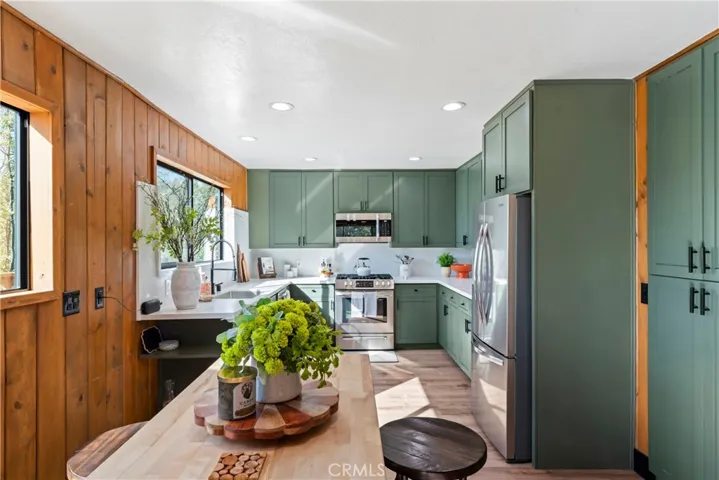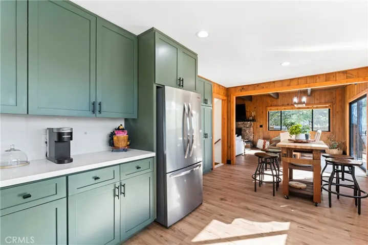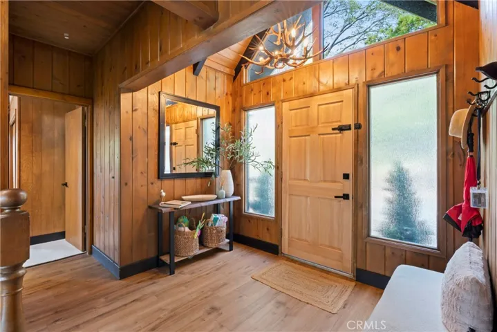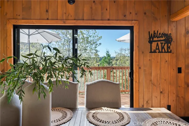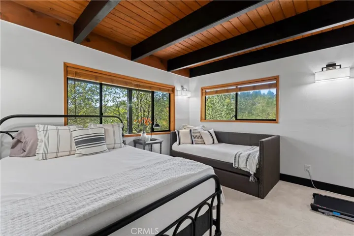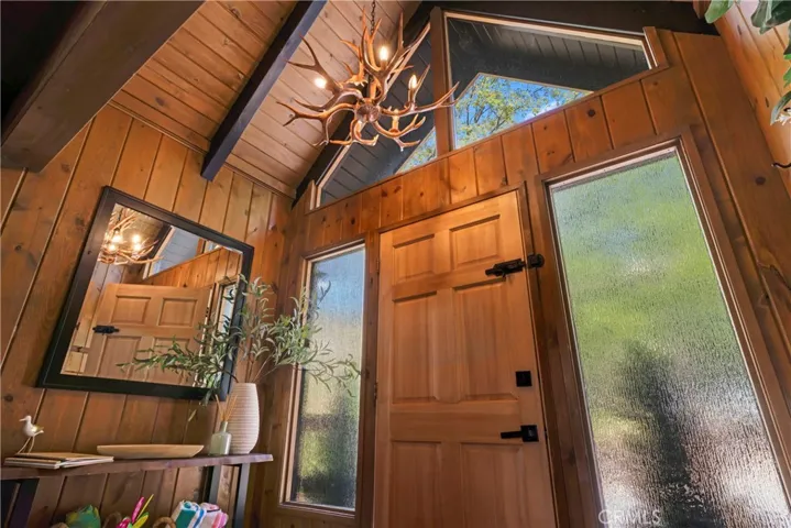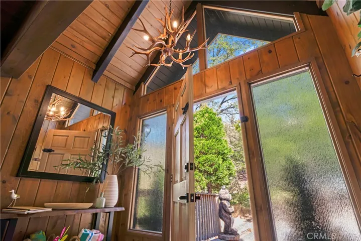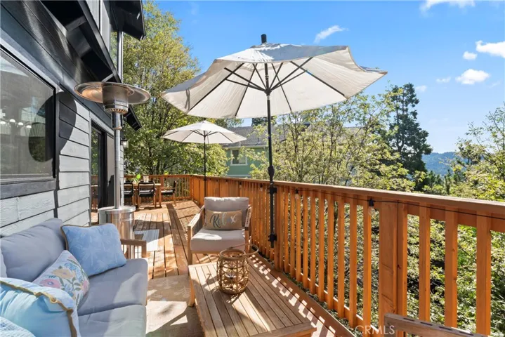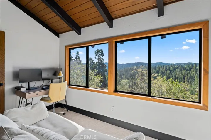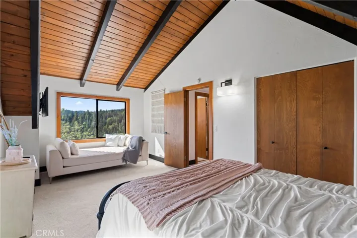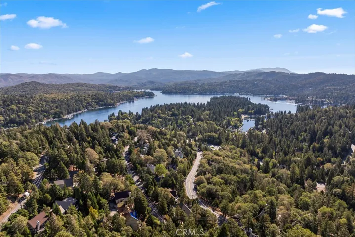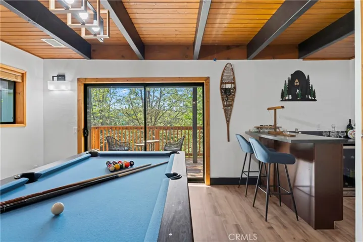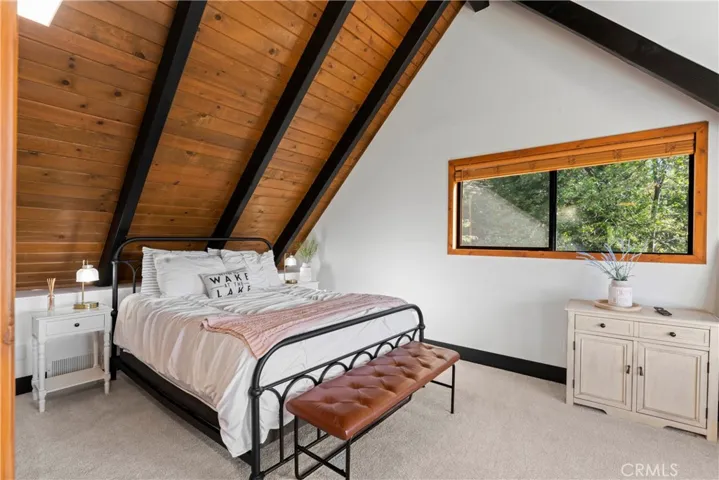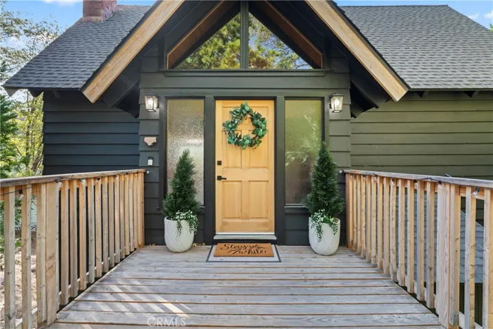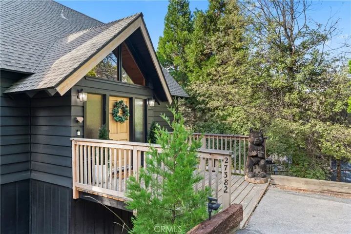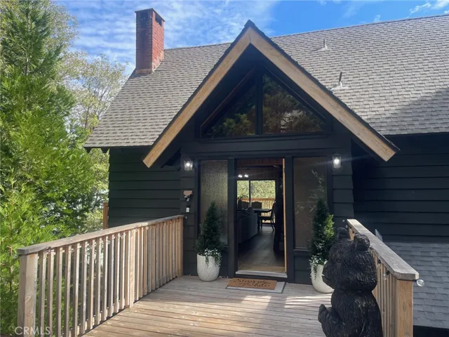 Welcome to “MR. BEAR” Mountain Chalet — a fully renovated, chic charcoal grey A-frame retreat w/LAKE RIGHTS designed for comfort and style. —————-LEVEL MAIN ENTRANCE ELEGANCE – Step into a warm caramel and tan interior with tongue-and-groove walls, beamed ceilings, and wide plank wood floors. Oversized sliders and picture windows frame breathtaking panoramic mountain ridge views. The open-concept living, dining, and kitchen area features contrasting dark wood beamed ceilings, forest green shaker cabinets, snow-white marble countertops, stainless steel appliances, and a striking Edison-style chandelier. An original lava rock fireplace and faux antler lighting add rustic charm. A sparkling white spa-style bathroom and cozy bedroom sit just off the entry. The dining area opens to a spacious wraparound deck that spans the length of the home. ——————–UPPER LEVEL SERENITY- Upstairs, two oversized bedrooms boast soaring cathedral ceilings and 270-degree unobstructed mountain ridge & forest views through oversized double-wide window sliders. Each room includes a private sitting area, perfect for soaking in the scenery. A shared ¾ bath and caramel-toned wood accents maintain the chalet’s cohesive design. ———————————–LOWER LEVEL RETREAT- The expansive bonus room downstairs includes a wet bar, island, and private deck — ideal for entertaining or CONVERTING TO A 5TH BEDROOM w/ CLOSET, bringing total guest capacity to 15. Adjacent is a luxurious primary suite with beamed ceilings, a large picture window, and soft linen-shaded sconces. The en-suite bath features a freestanding double vanity, charcoal limestone floors with white veining, geometric spa tiles, grey birchwood cabinetry, and a rainwater shower for a true Zen experience. ——————EXTRAS – The property includes a long driveway for 3–4 cars, an indoor laundry room, brand new large shed for storage, and a fenced yard/dog run — everything you need for the perfect alpine escape. WALK TO LAKE Access#38, TR 9 (Winter peek-a-boo Lake View) – simulated fire in FP. DOCK available in addition to home price.