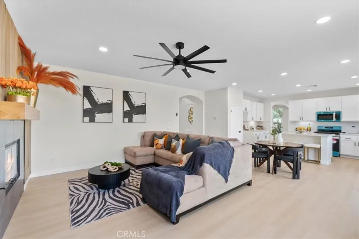 Welcome to this BEAUTIFULLY REMODELED and UPGRADED home you’ve been waiting for! With NEW laminate flooring, NEW baseboards, NEW recessed lighting, NEW stainless steel appliances, NEW quartz countertops, NEW interior paint, NEW modern ceiling fans, a NEW family room accent wall, NEW fireplace tiles and a mantel ready for the holidays. Bathrooms have been tastefully remodeled with NEW quartz countertops and NEW modern finishes, while the primary suite feels like a retreat with its vaulted ceilings, dual walk-in closets, spa-like soaking tub, step-in shower, and dual vanities.