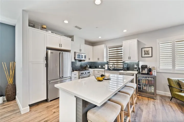Discover the most luxurious townhome in all of the gateway cities to Los Angeles. This stunning 2,180-sq-ft, four-bedroom, four-bathroom home was built in 2017 and meticulously remodeled throughout in 2022. Custom-designed for professional modern living, it features an expansive second-floor entertaining layout—perfect for lively gatherings or intimate celebrations. Enjoy the modern farmhouse style interior with custom shaker cabinetry,modern matte black railing and hardware, top-of-the-line Viking appliances, a custom kitchen island, and a separate partitioned office with upgraded lighting in every room.