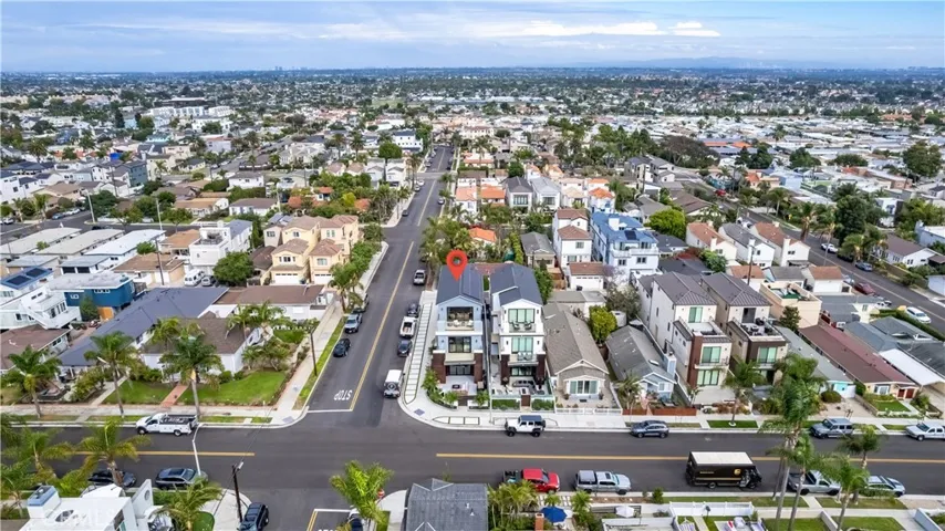 Beautifully designed tri-level beach home, perfectly set on a sunny, oversized corner lot just minutes from the sand and the lively heart of Downtown Huntington Beach. This sophisticated home built in 2021 spans over 3,300 square feet of thoughtfully curated living space and features a private elevator for effortless access to all levels. Bathed in natural light from expansive windows, the open-concept main level exudes warmth and elegance, enhanced by recessed lighting, high ceilings, a sleek cozy fireplace with integrated surround sound and oversized bi-fold patio doors open to an exceptional outdoor sanctuary, creating an ideal setting for indoor/outdoor year-round entertaining. The dining area, featuring a built-in wine display, seamlessly flows into the chef’s kitchen, appointed with premium Wolf stainless steel appliances, a spacious walk-in pantry, and a center preparation island with bar seating. The second level offers a versatile media or bonus room (easily converted to 4th bedroom), alongside two large bedrooms, including a primary suite designed for ultimate retreat living. The 3rd level features a second primary suite with a dedicated seating area with a built-in desk, a spa-inspired bath with dual vanities, soaking tub, walk-in shower, and a custom-designed walk-in closet. Each additional bedroom offers generous proportions and refined finishes. As well as a office perfect for a lounge, home office, or 5th bedroom, with an attached half bath, with direct access to expansive rooftop decks that elevate the indoor-outdoor experience. The 2 car garage is fully finished with epoxy flooring and built-in storage. Additional appointments include solar panels, 1st & 3rd floor ductless HVAC, 2nd floor individual climate control per room, automated blinds, tinted windows, a Savant smart home system, and Ring security cameras. This residence masterfully combines modern coastal sophistication, convenience, and refined luxury living in one unparalleled package all just a short walk to the beach, downtown Huntington Beach, the pier, Pacific City and more!