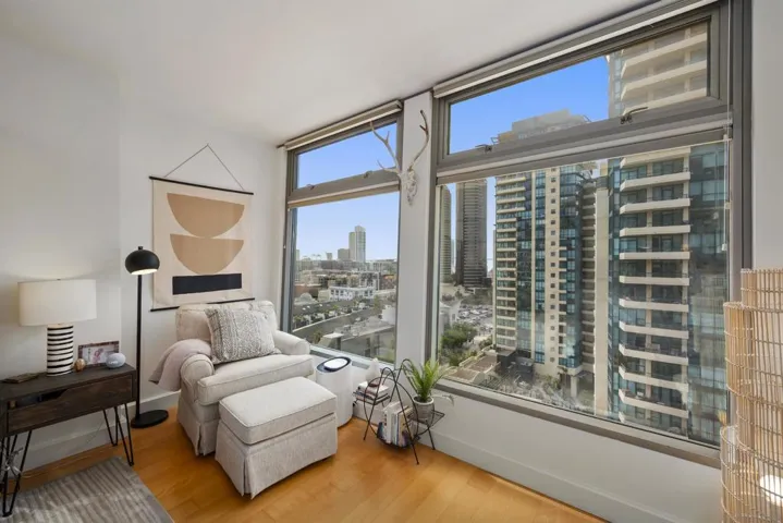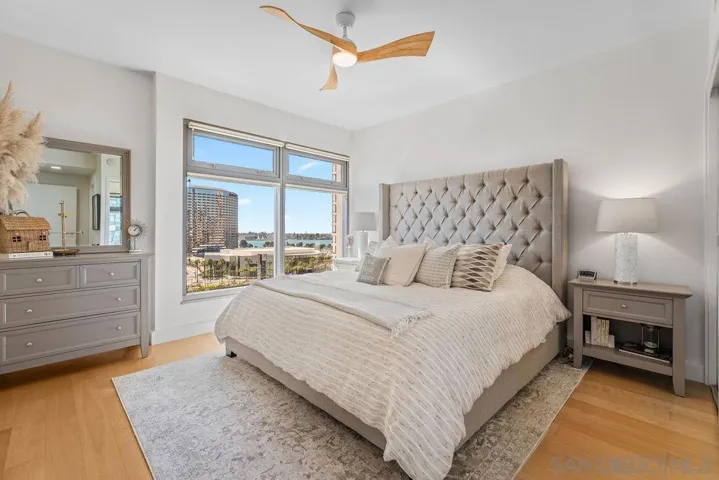 Experience elevated urban luxury in the heart of Downtown San Diego’s prestigious Marina District. This impeccably remodeled 3-bedroom, 3-bath residence is a rare find in the South Tower of Renaissance. Perched on the 12th floor, the home offers water views and abundant natural light through floor-to-ceiling windows, creating a seamless connection between vibrant city living and refined comfort. Completely reimagined kitchen, with rare natural granite, a Bosch paneled dishwasher, Sub-Zero paneled refrigerator, Hestan professional power range, and a custom bar area with Perlick double-drawer fridge and wine fridge. Additional highlights include maple hardwood floors throughout, a Samsung Frame TV with surround sound, and maple LVP flooring on the exterior deck. The Primary Suite impresses with a fully renovated spa-inspired bath featuring a freestanding tub, expanded walk-in shower, new cabinetry, and designer fixtures. The Junior Suite and third bath have also been transformed with custom showers in place of tubs, stylish new vanities, premium fixtures, and striking 24×48 porcelain slab tile. Practical luxury completes the home with two prime parking spaces (one extra-wide, one wide both with easy access) and a large storage locker with bonus storage, possibly the largest in the building. A Statement of Luxury in the Marina District. Perched high on the 12th floor of Renaissance’s coveted South Tower, this rare 3-bedroom, 3-bath masterpiece sets a new standard for downtown living. Walls of glass frame sweeping water views, flooding the home with natural light and blurring the line between cosmopolitan energy and private retreat. Completely reimagined kitchen with expanded counters draped in rare natural granite, a Bosch paneled dishwasher, Sub-Zero paneled refrigerator, and a Hestan professional power range. A custom bar with Perlick double-drawer fridge and wine fridge elevates every gathering. Maple hardwood floors lead you through spacious living areas designed for both entertaining and everyday elegance, enhanced by a Samsung Frame TV with surround sound and an exterior deck finished in maple LVP flooring. The Primary Suite is a spa-like sanctuary, boasting a freestanding soaking tub, expanded shower, custom cabinetry, and designer fixtures. The Junior Suite and third bath echo the same level of sophistication with sleek custom showers, new vanities, premium fixtures, and dramatic 24×48 porcelain slab tile. Every detail speaks of convenience and exclusivity: two prime parking spaces (one extra-wide, one wide—both with easy access) and a massive storage locker with bonus space, unmatched in the building. This is more than a home, it’s a statement!