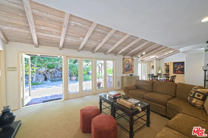 Prime Brentwood location! This spacious home offers a gourmet kitchen, abundant closets, excellent storage, a refrigerated wine closet plus the living room, dining room and office – all with French doors, open to a large patio & pool. The huge primary suite includes a private outdoor spa and balcony, while the luxurious bath features a jetted two-person tub and an exceptionally large shower. The resort-style backyard is perfect for entertaining with a lagoon pool and tranquil waterfall. Award-winning Kenter Canyon Elementary is just moments away. This home has it all, combining comfort, style, and convenience. Voluntary neighborhood association with optional $100/year dues supporting community quality and events. No mandatory HOA.