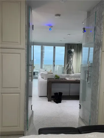 Beyond the sophisticated finishes, your private spa sanctuary awaits, featuring a steam room, an oversize jacuzzi, and two separate showers. The ocean air is invited in by an accordion patio door that dissolves the barrier between the living space and the Pacific.