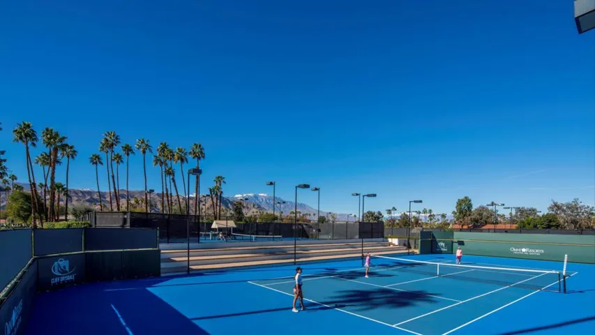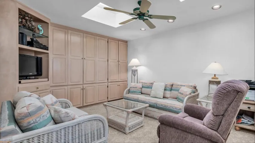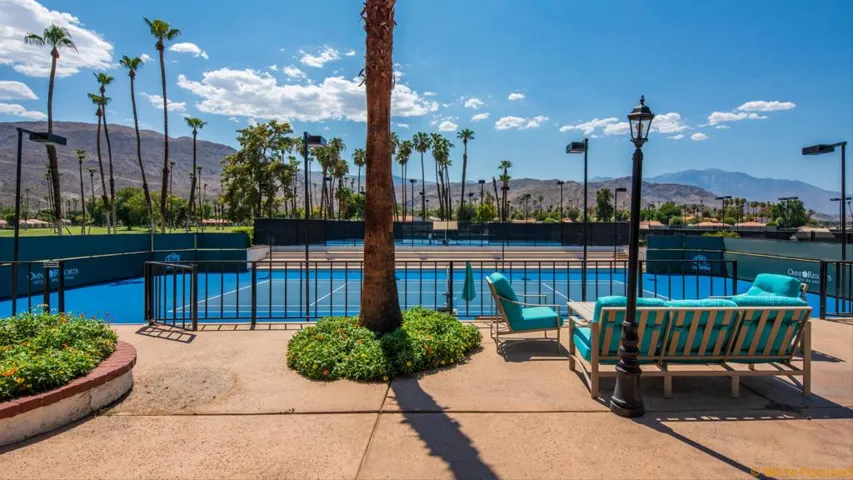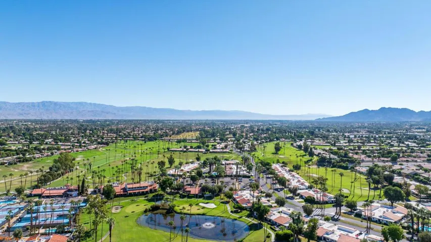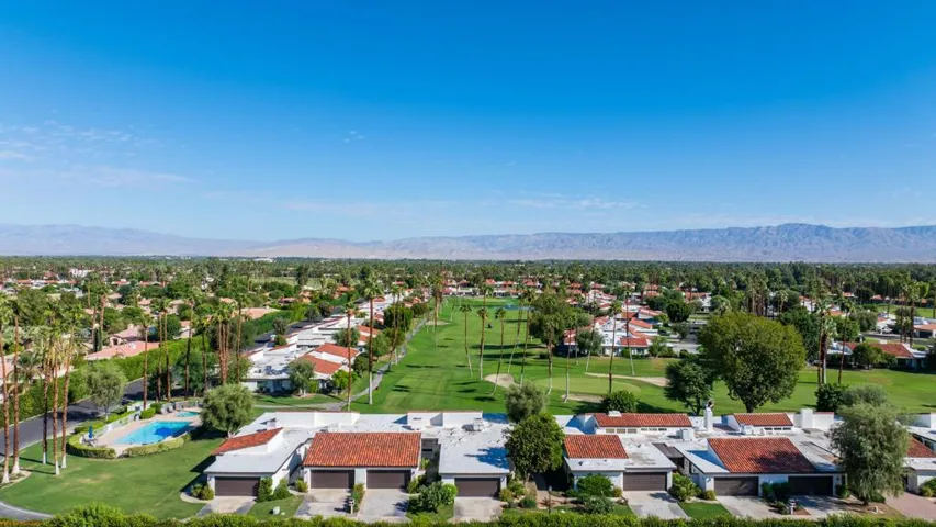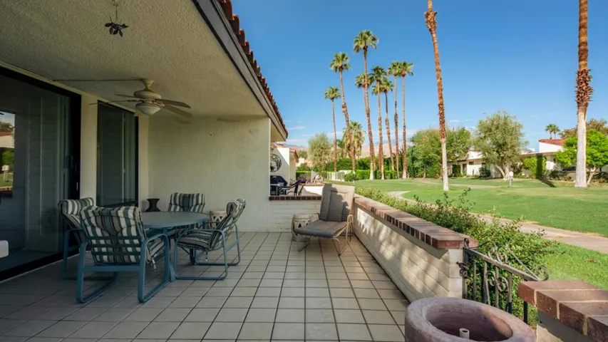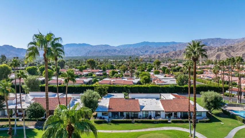 PRICE REDUCTION! MOTIVATED SELLER! Some of the BEST VIEWS! Mountains north and west plus long fairway greens. Move-in ready, furnished. Freshly Painted. Come and enjoy the luxury Rancho Mirage lifestyle. The entry ushers you into the open concept living and dining area. The wall of windows draws the eye to the spectacular greens and mountains beyond, and you imagine yourself enjoying that vista everyday. The kitchen has beautiful wood KraftMaid cabinetry with pullouts in the pantry. All appliances are included for your convenience. Take your meal outside or start up the BBQ from the convenient door to your private patio. The view from the kitchen windows is magnetic and you won’t mind kitchen duty in this picturesque setting. The cute breakfast bar is the perfect way to start your day with an adorable two seat counter. The dining area easily seats six for guests and family to join in. Just off the entry and living room is the multi-purpose third bedroom – used currently as a den with built -in wet bar. This sizeable room has tons of built-ins for storage, display shelves, large counter, sink and mini-fridge so you are ready to serve up the drinks after golf. Two large sky-lights add bright daylight to the space. And easy to make a guest bedroom with the closeable shutters and pocket door. Guest bedroom two is spacious and inviting, with guest bath right nearby that includes a tile shower over tub. The primary suite is a calm and serene setting with plenty of closet space and room for dressers. The ensuite bath features double sinks, Kraftmaid cabinets, make-up vanity area, and a convenient walk-in shower with shelves. The laundry room is spacious with cabinets. The 2 car garage has an epoxy floor, storage cabinets. Rancho Las Palmas Country Club is a complete resort adventure with fitness room, over 20 pools/spas, 27-holes of golf, tennis, pickleball, proshops, snack bar, full-service bar. The closest pool is a very short distance away, three doors down! HOA fees cover cable TV, internet, trash, landscaping, exterior painting, roof, security and more. Omni Hotel is right next door with Owners Discounts at food and beverage outlets, and there is also a full-service Spa! Take your golf cart across the street to The River for dining and retail excellence. Central location near to Eisenhower Medical Center, Airport, Dining, Activities like the Tram, Acrisure Arena, El Paseo shopping, Whole Foods.