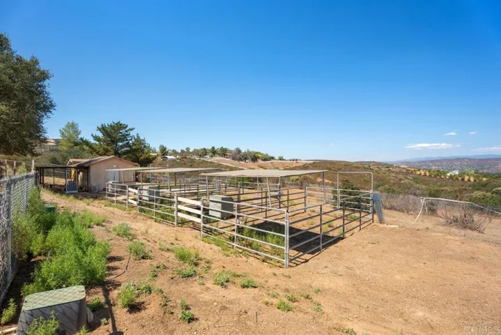 Welcome to this expansive and thoughtfully designed estate, offering comfort, functionality, and true country living with modern conveniences. Nestled in the back of the San Diego Country Estates, this property provides peace and privacy while still being close to community amenities, schools, and freeway access. Step inside to soaring ceilings and a spacious living room anchored by a wood-burning stove with gas start. The open layout flows seamlessly to a large family/dining room area, an open kitchen with large pantry area, and a private office with elegant acacia floors and a half bath. The primary suite is a true retreat, featuring two large closets with built-in organizers, real wood floors, and a luxurious bath with double sinks, walk-in shower, and soaking tub. A private slider leads you to the backyard oasis with hot tub and wraparound deck to enjoy the sweeping views. Two additional guest bedrooms with large closets share a full bath with dual sinks and separate shower/tub area. A spacious laundry room offers abundant storage, cabinetry, and a gas dryer connection. Energy efficiency and convenience are built in with central heat and zoned A/C (three zones), whole-house fan, EV charging station, whole-house RO and soft water system, and 48 paid solar panels with inverters in the garage. The three-car garage also provides ample space, while the basement includes a semi-finished bonus room in addition to a large air-conditioned area that can be finished for additional living space, wine cellar, craft room, etc. Outdoors, the property is a true homesteader’s dream with abundant fruit trees including citrus, peach, nectarine, apple, macadamia, blood orange, and grapefruit. The grounds feature a 12-station irrigation system, two outbuildings, a walk-in henhouse, corrals, a horse wash rack with power and water, and a tack room with electricity. Gardeners will love the automatic-timed garden irrigation. Additional upgrades include a 350-gallon propane tank, and a newer 10,000-gallon water tank with liner and pressure pump. With an electric gate to the garage, wraparound deck for entertaining, and plenty of space to live, work, and play, this property offers the best of rural living with modern luxuries.