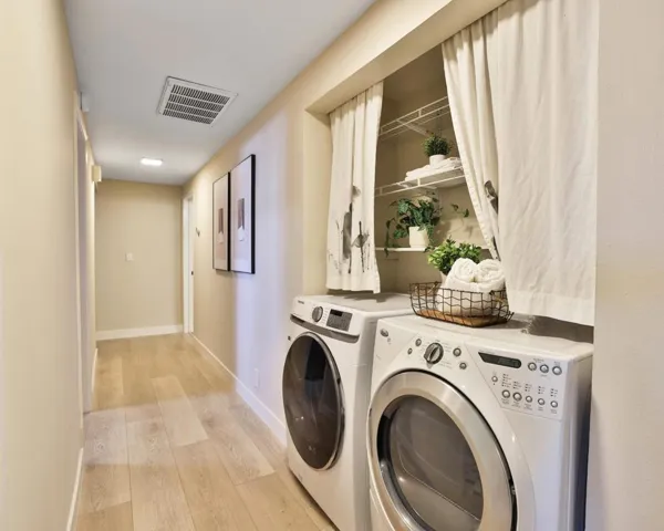 Welcome to this beautifully updated 2-bedroom, 2-bathroom condo in the highly desirable gated community. This first-floor corner unit features modern laminate flooring, a spacious open-concept living and dining area, and an updated kitchen with sleek stainless steel appliances. Enjoy two private patios that extend your living space outdoors, perfect for morning coffee or evening relaxation. Brand new HVAC system, heat and A/C installed! The home offers two assigned underground garage parking spots, a rare convenience, along with access to the communitys secure entry and well-maintained grounds. Ideal for todays lifestyle, the layout provides both comfort and functionality with generous natural light throughout. Located just minutes from Apple, shopping, dining, and major commute routes, this home also falls within top-rated Cupertino schools, making it an excellent choice for families and professionals alike.
