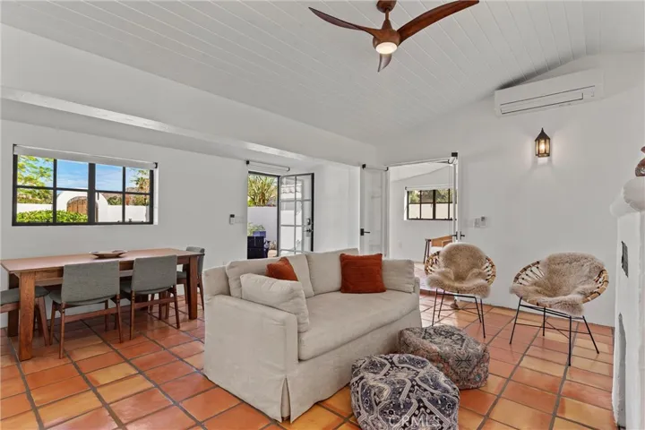 Discover the magic of old California at this extraordinary 1930s Spanish Casita, one of only 60 original homes built in the Historic La Quinta Cove. Nestled on a prime corner lot with breathtaking unobstructed mountain views, this rare desert treasure perfectly marries authentic period charm & modern luxury with no expense spared. Step through the gates into your private courtyard oasis, where flourishing citrus trees add charm to the enclosed front patio. This intimate space captures the perfect morning sun to take in the dramatic mountain backdrop. The heart of this casita is the beautifully remodeled kitchen, featuring premium Bertazzoni induction range, Viking refrigerator/freezer, & KitchenAid dishwasher. The fully furnished turnkey home creates a seamless transition from indoor to outdoor living through dramatic double glass French doors that open wide to blur the lines between the remodeled interior & your private backyard sanctuary, where a saltwater pool, built-in Santa Maria grill, & plenty of space for entertaining await. The covered lounge area provides the perfect retreat for enjoying your private slice of desert paradise. The living room showcases the home’s original character with its historic fireplace, while beautiful saltillo tiles flow throughout the home. Individual mini-split systems & elegant Minka Aire ceiling fans ensure year-round comfort throughout. The primary suite offers direct patio access, stunning mountain views, & an en suite bath adorned with handcrafted American Southwest tile work. On the opposite side of the home, two additional bedrooms share a jack-and-jill bathroom. This corner lot paradise sits directly adjacent to the mountains and across from Montezuma Street’s popular biking & hiking trails with access right out of your back gate. Located just minutes from Old Town La Quinta, which features many dining & shopping options, as well as a weekly Farmers Market, the La Quinta Art Festival, and more. The home is perfectly positioned near championship golf courses, Indian Wells Tennis Garden, Acrisure Arena, and Indio’s world-famous music festivals. Downtown Palm Springs is less than 30 minutes away, placing you at the heart of the desert’s premier entertainment destinations. This property includes an EV charger and benefits from the Valley’s lower utility rates. A once-in-a-lifetime opportunity to own a piece of La Quinta Cove history – where 1930s Spanish colonial architecture meets today’s luxury desert lifestyle!