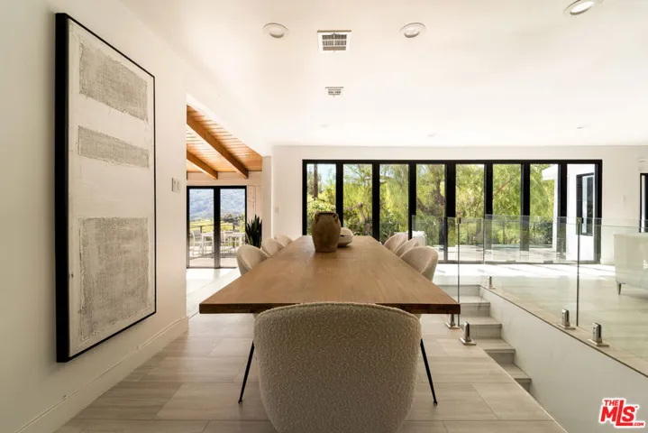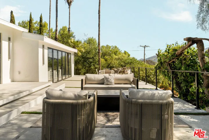 Remodeled Topanga compound retreat set on more than half an acre of fully usable land. Two separate street entrances provide effortless arrival and abundant parking for residents and guests. Indoor and outdoor living define the home. Fleetwood windows open the main living areas to expansive patios beneath open skies, framing sweeping views of the Santa Monica Mountains. A generous front patio sets the stage for al fresco dining and relaxed gatherings, while the pool enjoys its own private area away from the main living spaces, creating a serene environment for lounging or entertaining. Inside, the living room, dining area, and family room connect with natural flow, designed for both comfort and conversation. The cook’s kitchen stands at the center with a large island offering plentiful prep space and storage. A vaulted wood ceiling crowns the family room, where windows capture the landscape and bathe the interiors in natural light. The primary suite is spacious and features a private bath with dual vanities, a soaking tub, an expansive shower, and a walk-in closet. Two additional bedrooms are located on the main floor alongside a full bathroom with an oversized shower. The lower level adds versatile space to suit your lifestyle. A lounge can serve as a media or game room and easily function as an additional bedroom if desired. A full bathroom is also on this level, along with a separate room with its own entrance, ideal for an office, studio, guest quarters, or extra storage. Outdoors, the grounds invite both relaxation and gatherings, whether by the pool, on the patios, or across the broad usable lot. Nearby are scenic trailheads and beloved local favorites, with convenient access to both the Westside and the Valley.