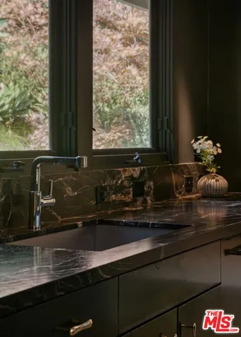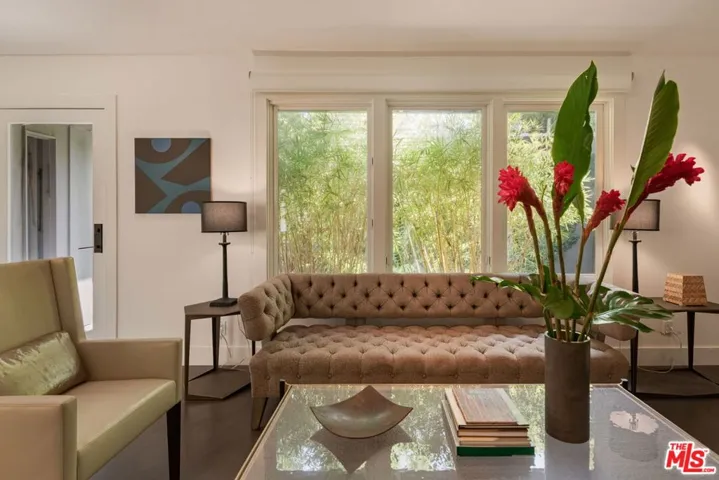 From the moment upon entry of this gated mid-century turned elegant modern property, the tranquil sounds of running water trickle through the lush Japanese gardens surrounding the premises. Nestled on a cul-de-sac, behind a sprawling California oak tree, in the heart of the Hollywood Hills, this regal retreat offers a serene, art-friendly blend of architectural elegance with stunning natural beauty. This special slice of heaven provides seamless indoor-outdoor living spaces perfect for entertaining or quiet relaxation. The home features soaring ceilings that bathe the interior in natural light, highlighting the exquisite stone and tile work throughout, especially the refined primary bathroom and sleek kitchen. A state-of-the-art Miele kitchen caters to the modern gourmet, while expansive windows and glass French doors create a harmonious connection to the breathtaking landscape featuring outdoor lounge and dining spaces. The neighborhood of Nichols Colony is a virtually secret enclave of architectural homes. And, 7535 Lolina Lane is an exceptional one among them. It’s a true haven for art and architecture enthusiasts alike.