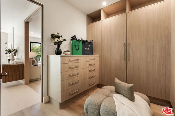 New Construction | Architectural Luxury in Brentwood!!! A masterful blend of Organic Modern and Mediterranean design, this newly built Brentwood estate redefines architectural sophistication. Behind private gates, the 6-bedroom, 5-bath residence showcases a seamless fusion of European warmth and contemporary elegance across its meticulously curated spaces.An 11-foot custom oak pivot door welcomes you into a soaring double-height foyer bathed in natural light from oversized skylights. Glass railings trace a sculptural floating staircase, while LED wall accents guide the eye toward tranquil backyard vistas. The expansive open-concept living area transitions effortlessly into a chef’s kitchen featuring push-to-open walnut cabinetry, leathered Taj Mahal quartzite countertops, and an oversized island seating eight. A secondary prep kitchen adds convenience and sophistication with a wet bar, pantry, beverage refrigerator, and built-in microwaveideal for entertaining or multi-generational living. Wide-plank oak flooring grounds the main level, while natural limestone elevates each bath with timeless appeal. Dual 20-foot sliding doors open to a private resort settingcomplete with a deck, outdoor kitchen, shimmering pool, and spa. The motor court accommodates four vehicles, complemented by a two-car garage with EV-ready wiring. Two main-level bedrooms provide flexibility for guests or can be transformed into a theater, gym, or home office. Upstairs, the primary suite is a true sanctuary, offering a spa-inspired bath, custom walk-in closet, and a private balcony overlooking lush landscaping. Four additional bedrooms, three baths, and 700 square feet of terrace space complete the second level. Crowning the residence is a 2,000-square-foot rooftop deck capturing sweeping views from the Santa Monica Mountains to Downtown Los Angeles perfect for sunset gatherings or outdoor cinema experiences. This smart home is fully wired with Cat 6 technology, whole-house audio, surround sound, and multi-zone climate control, ensuring seamless modern living.Just moments from Brentwood’s premier dining, boutique shopping, and the renowned farmers market. This estate is an extraordinary retreat for elevated California living!