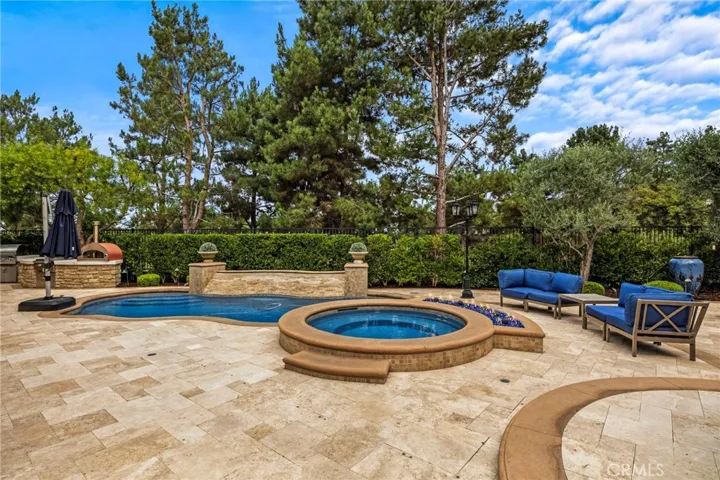 Gorgeous former model home in Covenant Hills with nearly 15,000 sqft lot, casita & resort-style yard.  Welcome to this exquisite 5-bedroom, 5.5 bathroom K. Hovnanian Capistrano masterpiece set within the guard-gated community of Covenant Hills. Situated on a rare 14,976 sqft lot, this nearly 5000 sqft former model home offers several recent updates, privacy, luxury and unmatched indoor-outdoor living. Designed for both entertaining and everyday comfort, this beautifully upgraded home features a versatile loft, 4 balconies and a 3-car garage with built-in cabinetry and water filtration. The spacious open-concept floor plan is flooded with natural light and adorned with custom features: hardwood and tile flooring, bi-fold door and windows, plantation shutters, electric window treatments, designer lighting, ceiling fans, wine refrigerator, and a custom fireplace. The chef’s kitchen is a showstopper with luxury stainless steel appliances, Wolf gas range, quartz countertops, glass-front refrigerator/freezer, an elegant custom backsplash and custom bi-fold windows to open the home to the yard. Step outside to your private resort-style backyard featuring a sparkling pool & spa, outdoor shower, fire features, built-in BBQ with Teppan grill, ½ basketball court, dog run, and newly landscaped grounds with custom built-in tables. The spacious primary suite includes a private balcony, elevated ceilings, custom bathroom, and built-in walk-in closets. Additional upstairs bedrooms are generously sized, along with a versatile loft. A tranquil outdoor courtyard with fireplace connects the main home to a detached casita, complete with kitchenette, full bath, living space, walk-in closet and private entrance — perfect for guests, in-laws or a private office. Other highlights include a main-level laundry room, abundant storage and leased solar for energy efficiency. Enjoy world-class amenities including a newly renovated water park, four resort-style pools, tennis and pickleball courts, scenic walking trails, and proximity to top-rated schools, shopping, dining, and all that South Orange County has to offer. Don’t miss this rare opportunity to own one of the finest homes in Covenant Hills set in the rolling hills of South Orange County!