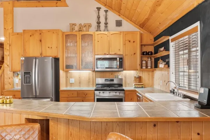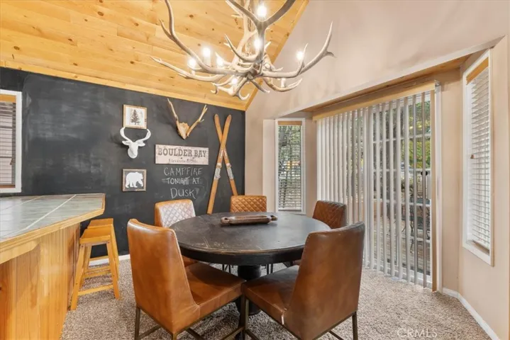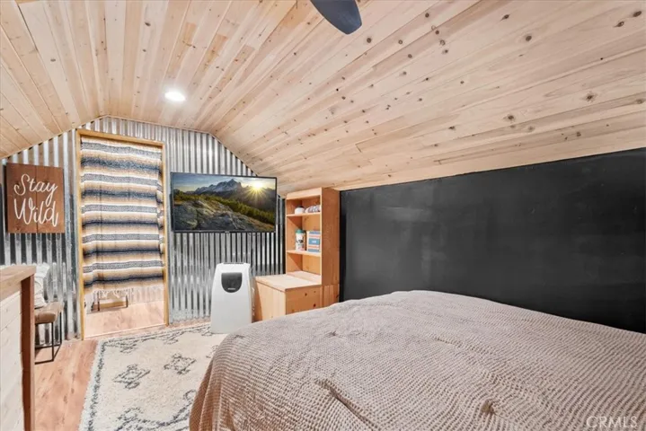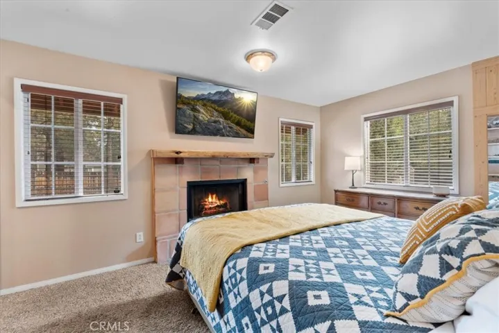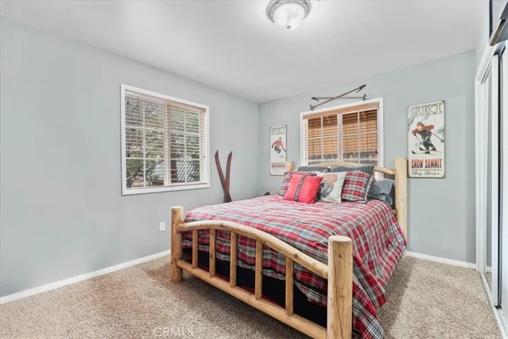 Located in the San Bernardino Mountains, this Sugarloaf cabin is perfect for your vacation getaway spot, or full time mountain living. Featuring three bedrooms and two full bathrooms on the main floor and a loft bedroom with half bathrom upstairs in approximately 1,264 square feet of living space, there’s plenty of room to bring the crew to celebrate and enjoy all four seasons on the mountain. Enter from the front door into the family living room featuring tall celings, cozy fireplace and tons of natural light. The peninsula kitchen with tile counters and breakfast bar is open to the living area and dining area with sliding door with direct access to the wraparound patio perfect for outdoor dining and barbecuing. Inside the primary suite is located at the end of the hallway and offers a walk-in closet, fireplace, and private en-suite bathroom with soaking tub and tile floors. The secondary bedrooms are good sized with mirrored wardrobe doors and located on either side of the remodeled hall bathroom with tiled walk-in shower. Parking an issue on the mountain? Not here, there are two paved, flat driveways easily fitting 5-7 vehicles. Enjoy the outdoors and play a game of horseshoes or take a walk and soak in the fresh air. A single level cabin home, with tons of parkings, and incredible location with proximity to Big Bear Mountain Resort, Big Bear Lake, you don’t want to miss this one. The mountains are calling, will you answer?