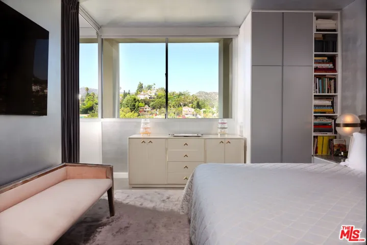The iconic Los Feliz Towers. This rare northwest corner unit offers a rare expression of modernist simplicity and elevated city living. Designed to celebrate light, clean lines, and uninterrupted vistas, the home creates a seamless dialogue between indoors and out. From sunrise over the Los Feliz Hills to golden-hour views of Griffith Observatory, every moment feels cinematic. Floor-to-ceiling Arcadia glass doors extend the living space onto a wraparound terrace overlooking lush gardens and the heated pool. The kitchen combines elegance and function, with a center island concealing a refrigerator, freezer, and wine fridge, while a wall of minimalist wood cabinetry provides storage and adds warmth and refinement. In the bedroom, a floating center wall cleverly conceals frosted-glass pocket doors that close for privacy or retract for openness. A versatile den adapts effortlessly to your lifestyle – ideal as a home office, library, media lounge, or guest retreat. The spa-inspired bathroom is a serene sanctuary, complete with a Kohler soaking tub, dual sinks, a separate shower, and custom cabinetry. Renovated with meticulous attention to detail, the home offers radiant heated floors, soundproofed walls and ceilings, and fully updated electrical, plumbing, and HVAC systems. As Los Feliz’s only full-service high-rise, the Towers provide 24-hour security, doorman service, a pool, fitness center with sauna, and a clubhouse. All just steps from beloved neighborhood favorites like Little Dom’s, Messhall Kitchen, and Blue Bottle Coffee. The ultimate Los Feliz residence, where design, luxury, and lifestyle converge.