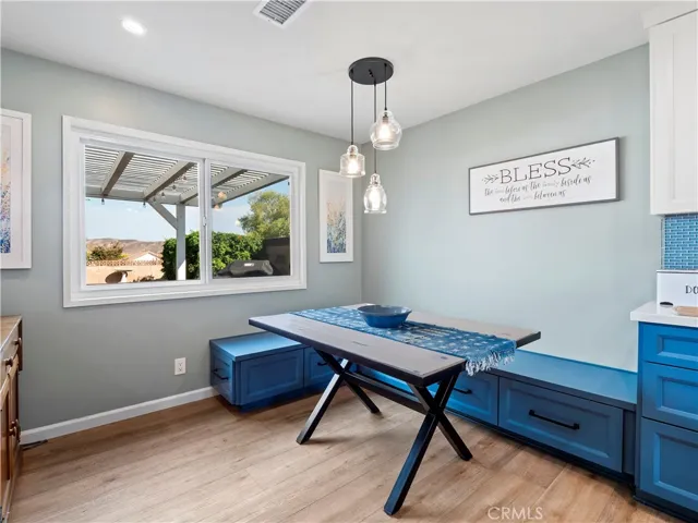 Welcome to this beautifully remodeled single-story home in the heart of Castaic with No HOA Fees or Mello Roos Taxes! Featuring 3 bedrooms and 2 bathrooms, this property showcases modern upgrades and charm throughout. Step inside to an inviting light and bright living room with a white brick gas and glass fireplace, vinyl plank flooring, and a slider leading to the backyard. The remodeled kitchen offers two-tone cabinetry, stainless steel appliances, a farm sink, quartz counters, built-in breakfast nook, and upgraded fixtures throughout. Additional highlights include a new electrical panel and sub-panel, updated ceilings and lighting, HVAC ducting, newer roof and a Tesla charger. Outdoors, enjoy a beautifully landscaped yard with a low-water drip system, pergola-covered patio, built-in firepit, dog run and peek-a-boo views. Located near Castaic Lake and Recreation Center, shopping, restaurants, award-winning schools, and with easy freeway access. Best of all—no HOA fees or Mello Roos taxes!