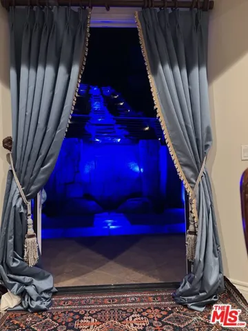 Privately situated on over one acre in a sought-after Calabasas community, this Mediterranean Contemporary residence offers nearly 6,000 square feet of living space. Built in 2013, the home features 5 bedrooms and 6.5 bathrooms with a thoughtfully designed floor plan.Interior highlights include a two-story entry, hardwood flooring, formal living and family rooms with fireplaces, dining room, bonus room, loft, and a wet bar. The primary suite offers a fireplace, walk-in closet, and full bathroom. The kitchen is designed for functionality with custom cabinetry, a large center island, pantry, stainless steel Viking appliances, and travertine finishes.The property is equipped with a security system and provides multiple spaces for entertaining. The backyard includes a built-in barbecue, mature fruit trees, waterfalls, fire pit, and a custom stage with professional audio/video wiring. Outdoor areas are designed for gatherings, performances, and recreation. Proprty is set high on a private hilltop, this estate is accessed through its own gated drive, offering both privacy and security. As you enter, a separate motor court provides parking for 8-10 vehicles. The kitchen is equipped with top-of-the-line Wolf appliances. If leased furnished, the home features hand-carved, custom designer antique furniture of exceptional quality.