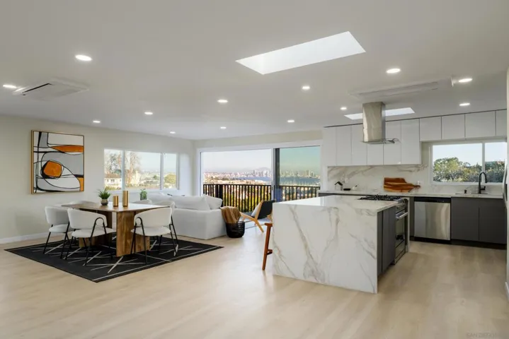 Unmatched Wow Factor for the Money — Rare, Unobstructed Bay & Skyline Views from all levels of the home. Step inside and be swept away by a panorama few homes in this coveted area can offer. From the moment you enter, the sky and glittering city skyline unfold before you — an uninterrupted, jaw-dropping view from the main living room and the primary suite that is hard to come by at this price. The top level features an open-concept floor plan where the kitchen flows seamlessly into the living, dining, and family rooms — perfect for entertaining, allowing guests to mingle, stay connected, and enjoy the sweeping views together. In a neighborhood where most views sound good on paper but are partially blocked, this property delivers a truly rare, wide-open vantage point that will leave your guests in awe. Completely reimagined with a modern European aesthetic, this 5-bedroom, 4-bathroom home features: • European kitchen cabinetry with quartz waterfall countertops, full backsplash, and stainless steel appliances. • Remodeled bathrooms with sleek, spa-inspired finishes. • Wider-plank flooring, new lighting fixtures, and custom sliding doors throughout. • Brand-new plumbing, electrical, windows, skylights, stucco, and roof for worry-free ownership. The home feels private and secluded from most of the neighbors as well. The lower level can be used as its own 1-bed/1-bath ADU with a private entrance. It is tough to find a recently remodeled home with this square footage and unobstructed views in this price range.
