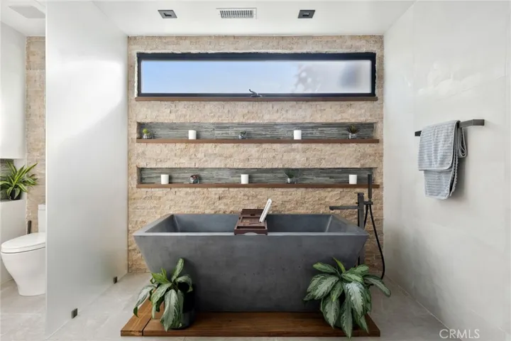 Set apart from the main home is a dedicated gym room situated right at the edge of the bluffs—an inspiring space to work out with the sound of waves crashing below. The expansive grounds offer multiple patios, manicured landscaping and a pool and spa where you have panoramic views of the magnificent Palos Verdes coastline. This property ideal for both quiet reflection and grand-scale entertaining.