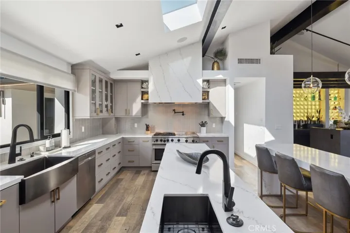 Inside, exquisite finishes and impeccable craftsmanship define the home—from soaring ceilings and wide-plank hardwood floors to and designer lighting. The expansive living spaces are flooded with natural light and open effortlessly to outdoor terraces, creating a seamless indoor-outdoor lifestyle. The gourmet kitchen is a chef’s dream, outfitted with high-end appliances, custom cabinetry, and a large center island perfect for entertaining.