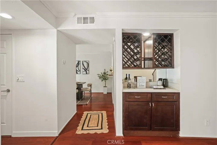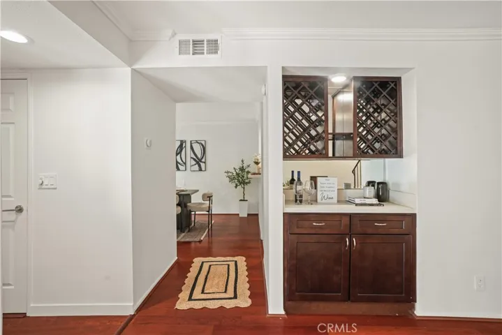 Beautifully Upgraded two story Townhouse in Woodland Oaks, Situated in the desirable Woodland Oaks gated community, this 2-bedroom, 3-bathroom townhouse has been tastefully upgraded throughout. The bright open floor plan features beautiful engineered wood flooring , recessed lighting, and a spacious living room with gas fireplace that opens to a private patio, perfect for entertaining.The remodeled kitchen includes quartz countertops, new cabinetry, stainless steel appliances, and a convenient laundry closet with full-size washer and dryer. The dining area opens seamlessly to the remodeled kitchen and extends to a second private patio, creating the perfect setting for indoor-outdoor entertaining. A powder room completes the main level. Upstairs offers two large ensuite bedrooms. The primary suite features dual closets, including a walk-in, and a brand new vanity and Brand new bathroom. The secondary suite also has its own private bath, brand new vanity and ample closet space. Additional highlights include a detached two-car garage, central HVAC, and thoughtful finishes throughout. Community amenities include a pool, spa, and recreation room, all within beautifully landscaped grounds. Prime location near shopping, dining, Costco, Topanga Mall, The Village, Calabasas Commons, freeway access,