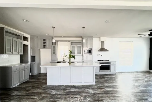 embodies an open-concept design, where the large central island functions as the room’s core, connecting the workspace with the adjoining living and dining areas creating ample room which creates a welcoming, airy atmosphere, ensuring that multiple people can work or socialize without feeling cramped. Home also includes a primary suite with a private bathroom and ample closet space. Additional features for this home include wall mounted pot filler above the stove, quartz countertops, central air, tankless water heater, 6 inch walls for added insulation. Backyard features manicured landscape with minimal care needed under automatic sprinkler irrigation system. Storage building included. Amenities of the Mobile Park also includes a swimming pool. A must see property!