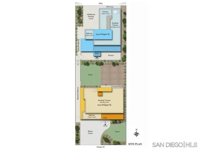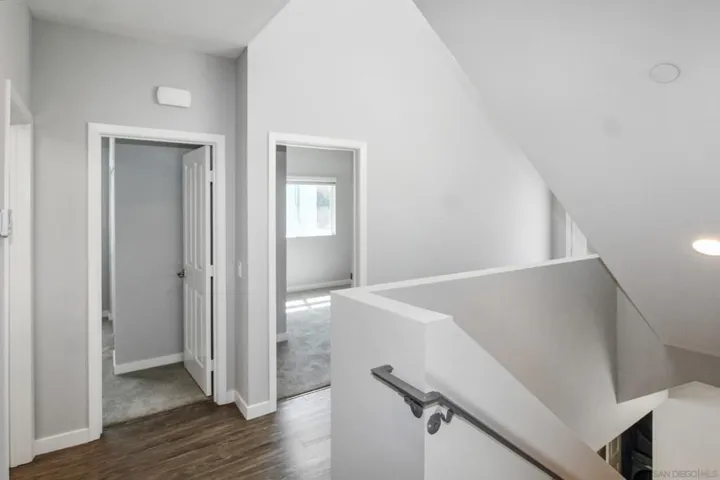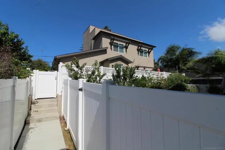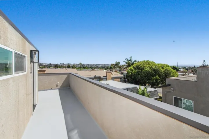 Model Home. Like New, The Contemporary Coastal Living in Pacific Beach – 2114 Felspar St, San Diego, CA 92109. Step into the ultimate Pacific Beach lifestyle with this amazing 4-bedroom, 3-bathroom condominium, with 1,800 sq. ft. of modern design elegance. This isn’t just a home; it’s your gateway to coastal bliss, free from HOA fees and meetings, thanks to a clever condo lot split that creates two independent homes. Arrive through a charming front gate and shared walkway or slip in discreetly via the quiet alley to your two-car garage and additional parking spaces. Inside, an open-concept design welcomes you with a showcase atrium staircase that spans all three levels, bathing the home in golden natural light. The ground floor hums with possibility: a sleek, modern kitchen flows effortlessly into the dining and living areas, perfect for lively gatherings or cozy nights in. A versatile bonus room awaits your vision—transform it into a fourth ground-level bedroom, a chic home office, or a welcoming guest retreat. Ascend to the upper levels, where three thoughtfully designed bedrooms offer comfort and style. The primary suite is your personal sanctuary, complete with a private deck for morning coffee or starlit evenings. But the real showstopper? An expansive rooftop deck and recreational area, serving up panoramic peek views of Mission Bay and the twinkling San Diego skyline. Picture yourself hosting sunset soirees, lounging in the sun, or cheering for Mission Bay summer-long fireworks from this unobstructed perch.