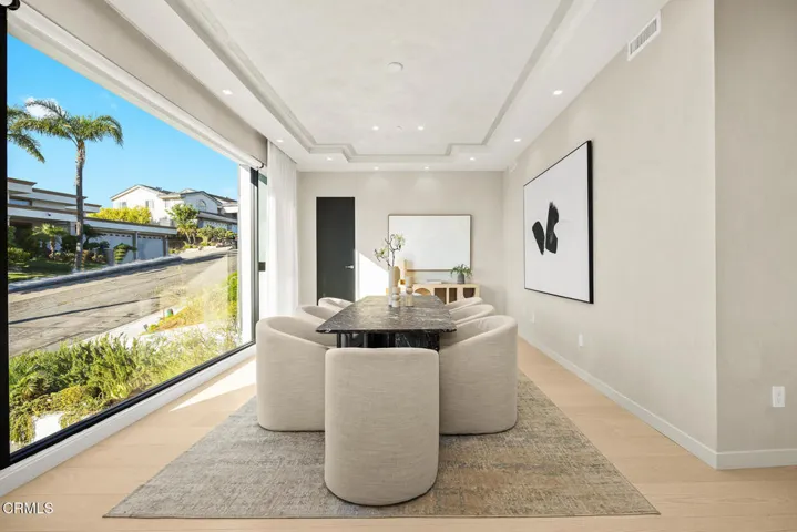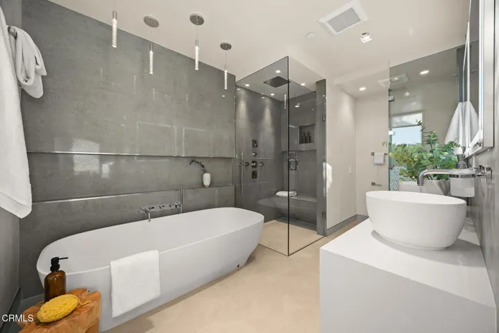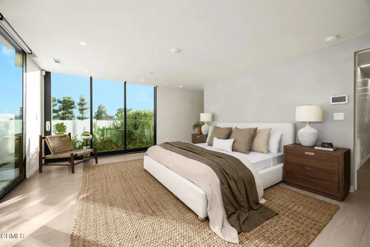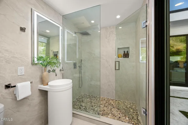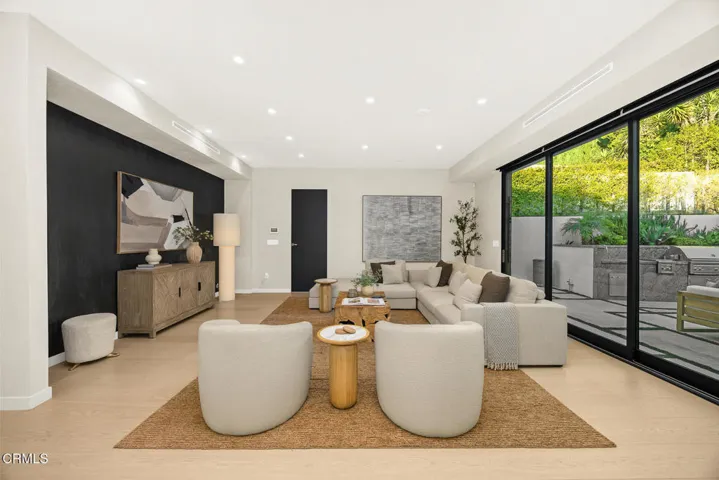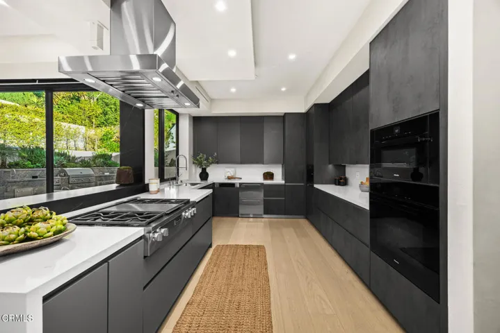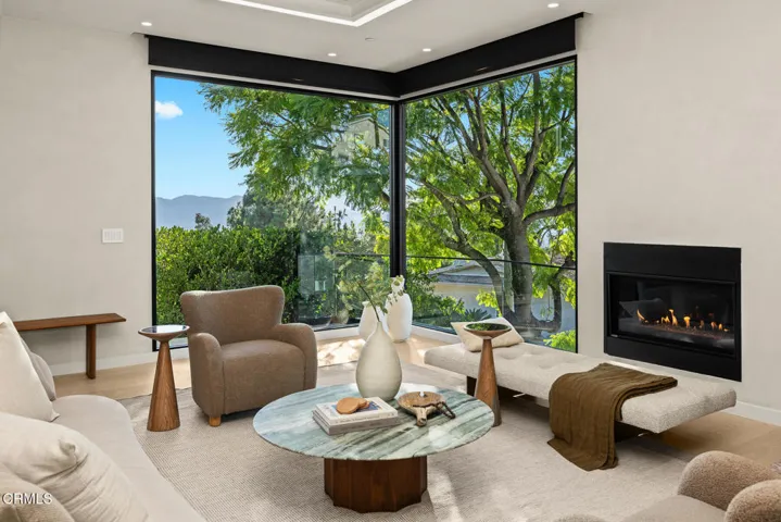 Introducing 1000 Avonoak Terrace, a Stunning Contemporary Villa with panoramic views stretching from the skyline of downtown Los Angeles to the mountains of Glendale. Perched on an elevated lot in the prestigious enclave of College Hills, this architectural gem was thoughtfully remodeled and expanded in 2022, blending modern sophistication with organic warmth & texture, showcasing a timeless design elevated by curated materials and high-end designer finishes throughout. Experience soaring 10-foot ceilings and floor to ceiling windows in the main living areas creating an atmosphere bathed in soft natural light. The 9-foot custom steel and glass front door makes a dramatic first impression entrance. A skylight illuminates a grand front entry leading to the spacious living room w/ fireplace & sweeping views, flowing seamlessly into a formal dining area and an open concept family room which interacts with the kitchen and has views to the living room. The kitchen is anchored by Thermador and Miele appliance suites, designed to elevate the culinary experience, including a wine cooler, coffee/espresso system, Perlick dual-drawer refrigerator, heated water dispenser, and seamless European cabinetry, accented by waterfall stone countertops, and a sit-up island complete the space. Featuring three luxurious ensuite bedrooms and four bathrooms – the primary suite, framed by stunning views, offers a serene spa-inspired bathroom, his/her custom walk-in closet, and a private balcony. Two secondary ensuite bedrooms w/beautifully designed 3/4 baths, custom closets, w/ views and access to outdoor patio and courtyard spaces. Step into a beautifully landscaped courtyard retreat. Offering a built-in outdoor kitchen w/ an expanded granite waterfall countertop, Lynx barbecue and integrated cooktop, generous dining, and lounge area w/ a modern gas fire pit –perfect for intimate evenings or entertaining guests. Indulge in the private outdoor spa, set against sweeping skyline & mountain views, and explore the wraparound patio with glass railings–all thoughtfully designed for seamless indoor-outdoor living. Additional highlights – automated window shades, flush-mount dimmable lighting, landscaping w/ driplines, home security system, dual-zone HVAC w/Nest, 400-amp electrical service, tankless water heater, EV charging station in garage and bonus storage room. Come experience this one-of-a-kind luxury home – a perfectly composed sanctuary where luxury meets lifestyle.