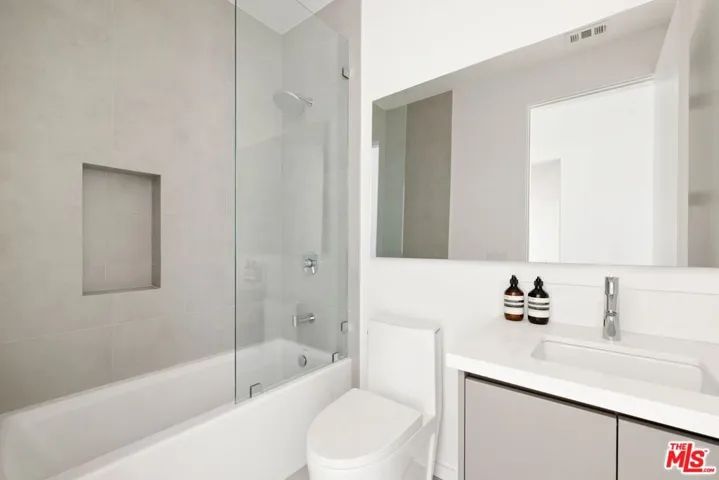 Residence Two at Weho F1 is a sophisticated two-bedroom, two-and-a-half-bath home that embodies modern architectural pedigree with soaring 11-foot ceilings, a bright open-concept living plan, and a large private rooftop patio that creates an exceptional indoor-outdoor lifestyle. Floor-to-ceiling Milgard windows, wide-plank oak flooring, and expansive living and dining areas enhance the natural light and effortless flow throughout, anchored by a dramatic great room that frames treetop and sky views. The sleek gourmet kitchen provides a refined backdrop for entertaining and everyday living, while both bedrooms are generously proportioned with spa-like en suite baths and a thoughtfully designed powder room. Set within Weho F1, an intimate boutique building in the heart of West Hollywood, this residence offers an elevated lifestyle just moments from Melrose, Beverly Grove, and the city’s most coveted dining, shopping, and cultural destinations.