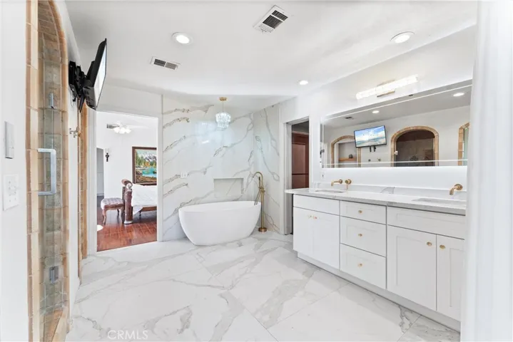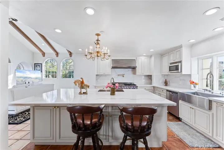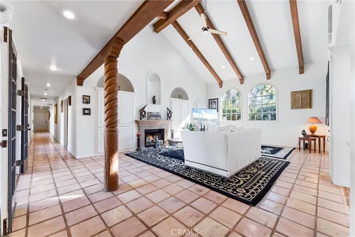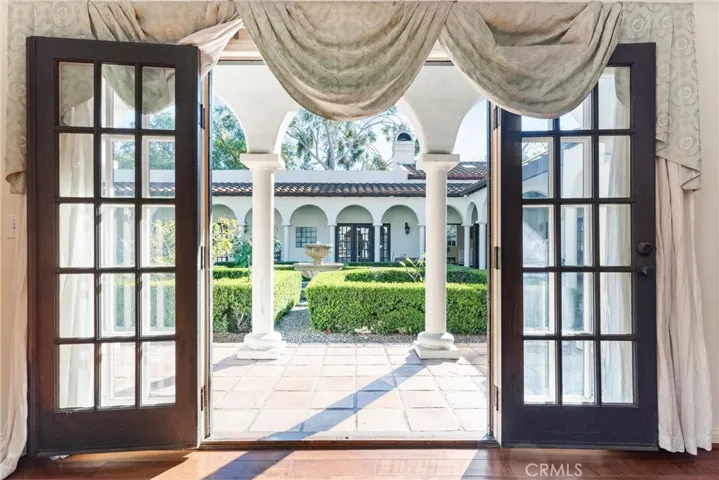 Welcome to 1620 El Travesia Dr. A Custom built Spanish Estate situated on a flat almost 1 acre parcel. Single level home boasts 4 bedrooms and 4.5 bathrooms. The home is architecturally designed in the most exquisite Spanish Style complete with gardens highlighting a Spanish mission style influence. Enter the home through a gated courtyard continue through the hand carved entry doors to the grand foyer. A Well designed floor plan will accommodate a large family, guests & a great home for entertaining. There are two wings with the central living areas in the center of the home. French doors all around provide natural light, views to the gardens, and open to the wrap around veranda. A Primary suite with French doors to view the gardens, a sitting room, wet bar, spa like bathroom & a huge walk-in closet built-in cabinets and shelving. Formal Dining room, formal living room, family room and an informal eating area adjacent to the remodeled kitchen and family room. Makes it a great hang-out area for family and friend to enjoy. High ceilings with wood beams, arches & columns are just some of the custom features. Rose gardens, fruit trees all manicured with walking paths for touring the gardens. Living or visiting this home is like being at a resort everyday. A separate gym area, outdoor bbq patio with a fireplace. Potential lot split to accommodate an ADU, guest house or build another home. Connected to Sewer no septic. Circular driveway, a 3-car garage, finished epoxy flooring, additional storage room. Additional parking can accommodate an RV. A side yard garden with a secondary laundry area for cleaning the outdoor garden supplies. 3 Fireplaces two are indoor & one outdoor in the BBQ patio. One of La Habra Heights’ Iconic properties. You should not miss the opportunity to make this yours & live at your own private resort!
