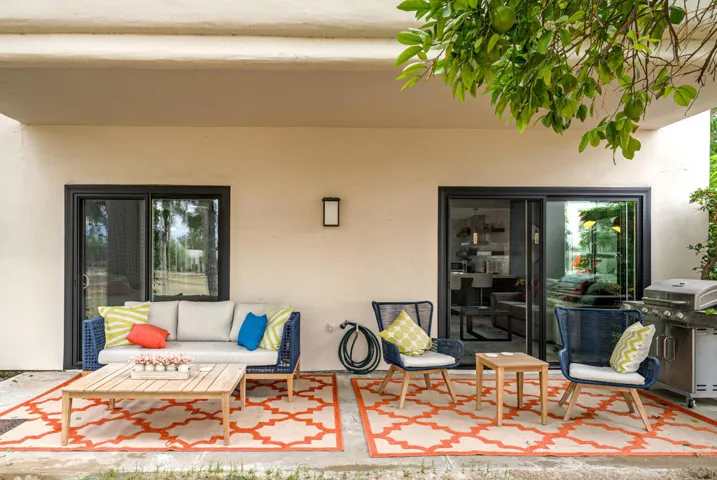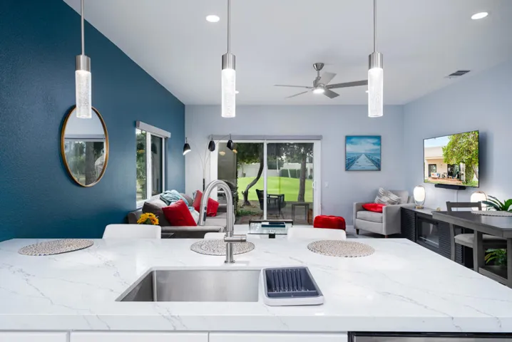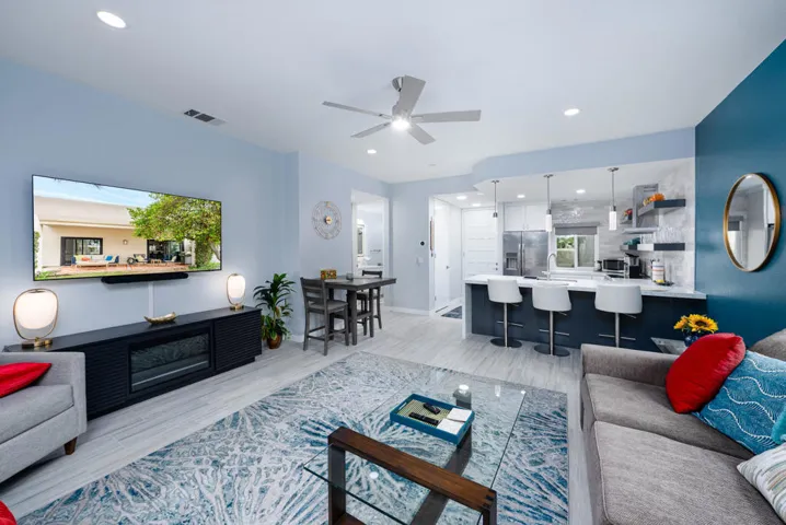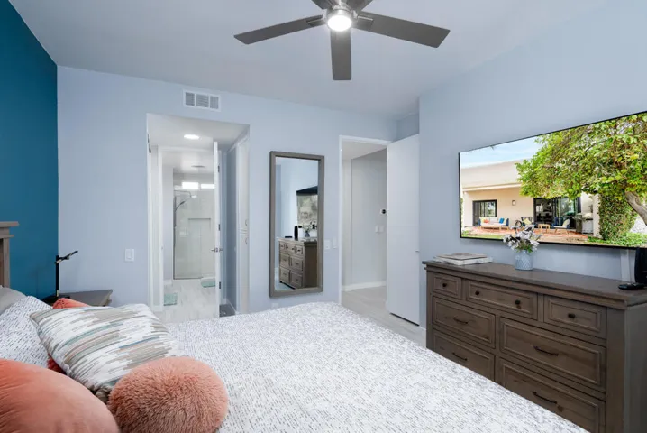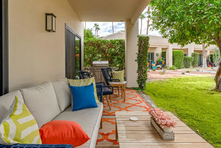 NEWLY REMODELED!!! Be the first to enjoy this completely remodeled, Southwest facing cul-de-sac condo located on the Lagos #5 golf hole. Every detail has been thoughtfully designed and executed to surround you or your seasonal tenants in luxury. Property is currently a seasonal rental and has an excellent rental history with on-site management. Available now to purchase and move in prior to any rental bookings for 2026. Desert Princess Palm Springs Resort is a full-service, gated community with 1200 homes, 35 pools and spas, 27 holes of PGA Championship golf, full clubhouse with bar, dining, pro shop and locker rooms. PGA professional golf instruction, full-service tennis and fitness center, full-service spa, pickle ball, walking trails and more. The Double Tree by Hilton resort is also on site.Just 10 minutes from Downtown Palm Springs and 20 minutes to Palm Desert El Paseo shopping. Stater Brothers grocery, Fed Ex Office, Post Office, Wal-Mart, Target, Trader Joe’s and all major services are within 5-10 minutes.