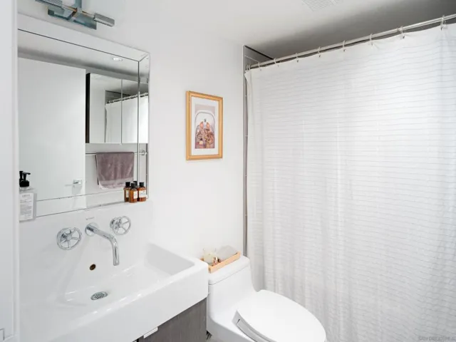 Experience trendy Little Italy living at “The Titan”: a unique four-story, 2Bed/2Bath condo/loft created by iconic architect and developer Jonathan Segal FAIA. It is freshly painted, has full sized washer & dryer, 1 parking spot in gated area, partially furnished (sofa, living room TV credenza, wine fridge, electric stove, microwave, fridge, stainless steal kitchen table, bedroom dresser & queen sized memory foam bed with frame), unmatched curb appeal with a 18-ft floor-to-ceiling windows and 200 sq/ft private use covered rooftop “birdcage” which showcases views from East to West. Condo is READY for you to move in now!