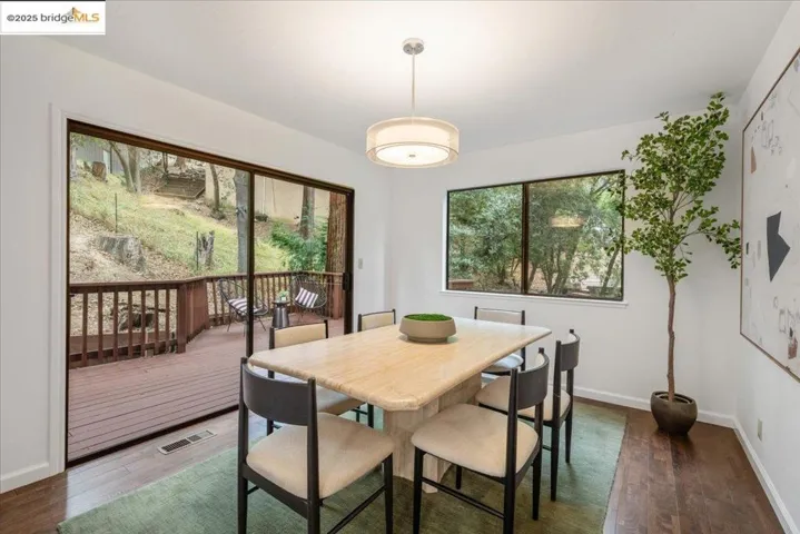 Just minutes from Montclair Village, this two-bedroom, 2.5-bath home offers the perfect balance of convenience and hillside retreat. The updated kitchen features stainless steel appliances, while spacious rooms and a built-in sauna provide comfort and relaxation. Take in the tranquil canyon views and enjoy seamless indoor-outdoor living with a full-width back deck and an upper-level deck—ideal for morning coffee or unwinding in nature. Both bedrooms include en-suite baths, and a main-level half bath off the dining room adds everyday convenience. Additional highlights include a two-car garage, cozy brick fireplace, and a laundry room located on the bedroom level. This move-in ready Montclair retreat is just minutes from the Village’s shops, cafés, and restaurants.