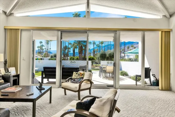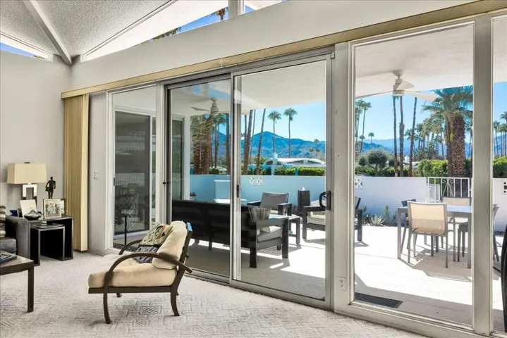 An exceptionally well located 3 + 2 architectural masterpiece offers commanding southern oriented mountain VIEWS. This 1700 + square foot unit is a ”Fixer-upper” and will appeal to a preservationist / restorationist looking to return the unit to architects’ Palmer & Krisel’s original vision. An over-sized beautifully landscaped terrace with fountain is the added value on this potential showplace. A 1980’s style kitchen and original 1960’s bathrooms together with an enclosed double carport and enclosed second bedroom atrium will require attention. Upgrades not covered in needed cosmetics are double pane doors and windows including clerestories an approximately six year old HVAC and a new sewer line connects the house to city services. A new driveway and curated landscaping sets the stage upon arrival. .