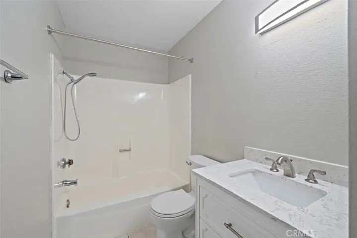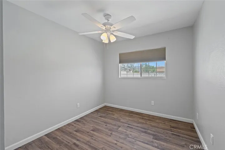 The backyard is perfect for relaxation and entertaining, featuring a gated pool and spa, a covered patio, and open concreted areas with some grass. A citrus tree and a pomegranate tree add charm to the landscaping, while a spacious side yard provides room for RV parking.
