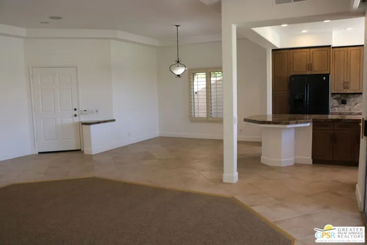 This unit has just been painted throughout giving a fresh new look to this lovely Golf Course home that includes land ownership. Located within the gates of the beautiful Mission Hills Country Club with its magnificent golf courses and majestic mountain range views. A short distance to excellent restaurants and the El Paseo shopping adventures. Granite counters in the gourmet kitchen and bathrooms, wood cabinetry, wine cooler, breakfast bar perfect for entertaining, new bedroom carpeting, plantation shutters, security system, vaulted ceiling, ceramic floor tile & carpet throughout. Included is a two-car garage plus a garage for your golf cart. Low maintenance landscaping courtyard and large rear patio. This Is The Essence of Fine Country Club Living.