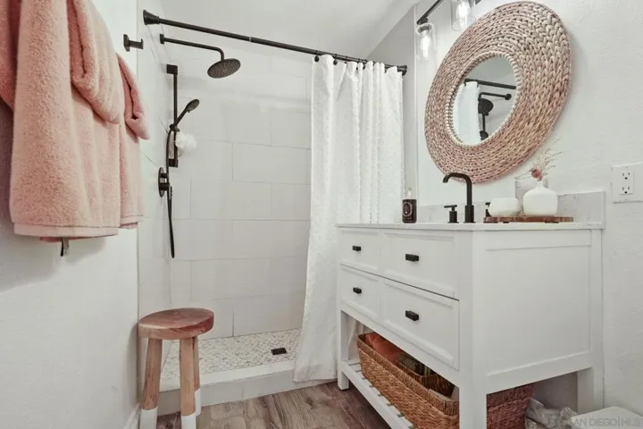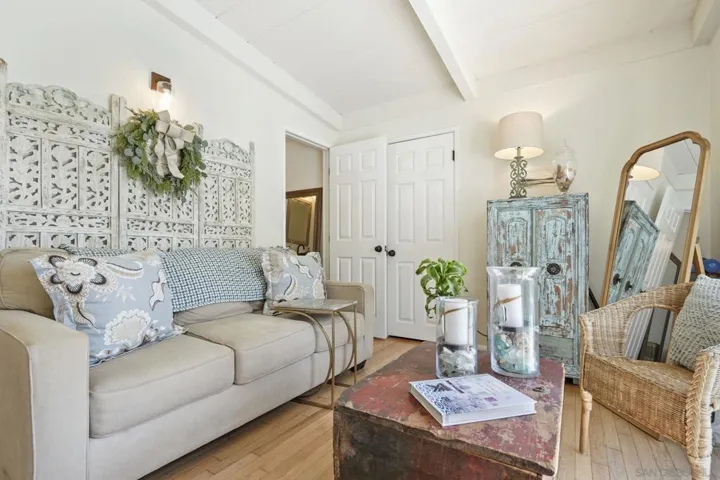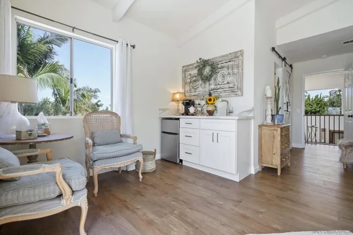Tucked away on a peaceful cul-de-sac with private entry, this beautifully updated Olde Carlsbad home offers inviting coastal living with an open-concept kitchen, living, and dining area filled with light. The main level provides single-story living with three bedrooms plus a den, each opening to the backyard with pool, firepit, and outdoor entertaining spaces. Upstairs, the private primary suite features a spa-like bath, walk-in closet, kitchenette, and balcony with west-facing sunsets and peek-a-boo ocean views. A flexible layout, perfect for multigenerational living, guests, or extended family. All just minutes to Carlsbad Village, beaches, and top-rated schools. This isn’t just a home, it’s a lifestyle. Welcome to Olde Carlsbad Coastal Living! Tucked away on a peaceful cul-de-sac with a private entry, this beautifully updated home captures the essence of Carlsbad charm; blending cozy character, stylish upgrades, and entertainer’s delight all in one. It offers the perfect balance of comfort, flexibility, and the best of Southern California living. Inside, an open floor plan seamlessly connects the living, dining, and chef-inspired kitchen perfect for gatherings large and small. The heart of the home shines with sleek appliances, contemporary finishes, and abundant natural light. The main level offers true one-story living with three spacious bedrooms plus a den, each with direct access to the dream backyard. This design makes everyday living easy and convenient for family, guests, or multigenerational needs. Upstairs, the private primary suite is the crown jewel of the home—a peaceful retreat complete with a spa-like en-suite bathroom, walk-in closet, kitchenette, and a west-facing balcony showcasing beautiful sunsets and peek-a-boo ocean views. With its thoughtful layout, the suite feels like a separate sanctuary while still keeping you connected to the heart of the home. The backyard is an entertainer’s paradise; a sparkling pool, cozy firepit, and multiple outdoor living areas designed for dining, lounging, and making memories with family and friends. Just minutes from Carlsbad Village, you’ll enjoy walkable access to beaches, parks, hiking trails, top-rated schools, boutiques, and dining. This isn’t just a home, it’s a lifestyle. A rare coastal gem offering one-story convenience with a private upstairs suite, cozy charm, and unforgettable sunsets in one of North County’s most sought-after neighborhoods.