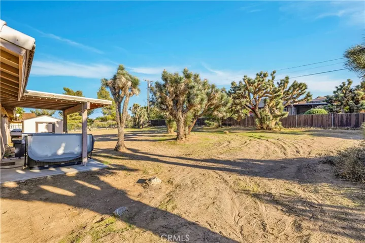 Outdoors, the property has mature Joshua Trees, mulberry, blooming roses, and native cacti. There is plenty of room to garden, entertain, or expand, as this spacious lot is ready for your vision.