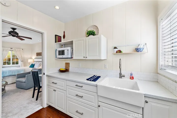 Nestled in a tranquil backyard garden lies the perfect guest unit. This beautiful and spacious one-bedroom suite features a cozy sitting area that opens up to a private backyard with a lovely patio and awning, surrounded by lush gardens, a grassy yard, and fruit trees.