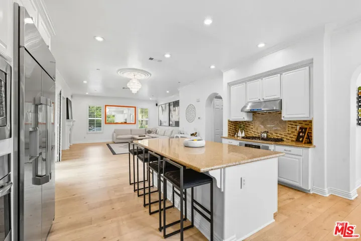 Step into this stunning 5-bedroom, 5.5-bathroom Chatsworth residence, nestled in the gated enclave of Stonehaven Estates. With just under 4,500 square feet of thoughtfully designed living space, this home blends luxury with everyday comfort. From the moment you enter, you notice the ceiling height sets a luxurious tone, guiding you into the elegant formal living and dining rooms, perfect for memorable gatherings and celebrations. The kitchen features upgraded stainless steel appliances, an oversized center island ready for culinary works, and a walk-in pantry large enough to make any chef swoon. Off the kitchen, discover a unique and private guest suite complete with its own living room, bedroom, and bathroom; ideal for visitors or extended family stays. The kitchen opens seamlessly into a sprawling family room, anchored by a beautiful entertainment center and fireplace. A chic powder room and an additional guest bedroom with a full bathroom complete the main floor. Head upstairs to find a spacious family lounge; your future game room, play area, or home theater awaits. The light-filled primary suite is a luxurious retreat with a generous walk-in closet and a spa-inspired bathroom. Three additional guest bedrooms and an upstairs balcony provide ample space, rounding out the second level. Step out back to your personal oasis: beautifully landscaped grounds and a charming gazebo set the stage for unforgettable outdoor entertaining or peaceful relaxation.