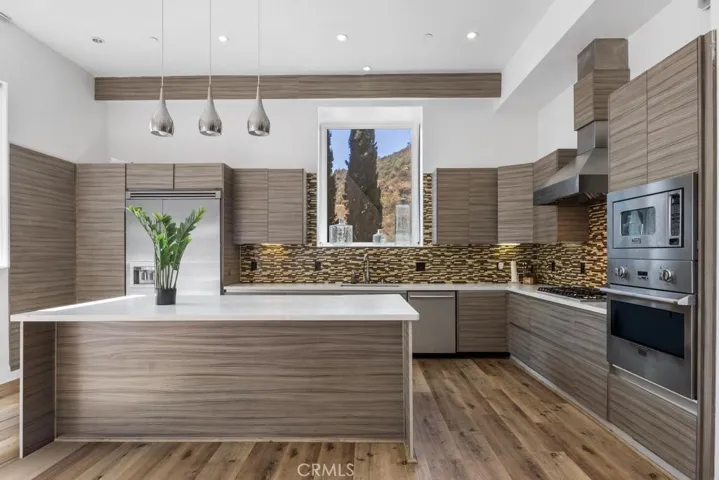 Contemporary two-level Hollywood Hills home with pool and views. This beautiful home was built in 2013 from the ground up, boasting a marvelous 3,000 Sqft of living space, and sits on a massive lot just under 17,000 sqft. This gorgeous home offers a heated saltwater pool, modern entertainment including built-in surround sound speakers, a fire pit, and high ceilings with recessed lighting. Large windows that bring in tons of natural lighting, an open floor plan, hardwood flooring throughout, a spacious open kitchen with stainless steel Viking Bespoke appliances, and Silestone countertops. Enjoy spacious bedrooms with en-suites and walk-in closets. The master suite features a jacuzzi tub, two walk-in closets, and French balcony doors leading out to a 1,000 square foot wrap-around balcony. A must see, schedule your viewing now, rates are negotiable!