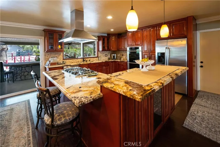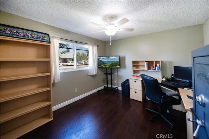 The backyard is an entertainer’s oasis featuring a built-in BBQ with sink and relaxing spa. Mature palm trees provide natural beauty while an abundance of fruit trees offer fresh apples, lemons, limes, pomegranates, pears, guava, and exotic dragon fruit right in your backyard. Horse enthusiasts will love the horse stalls and spacious storage shed.