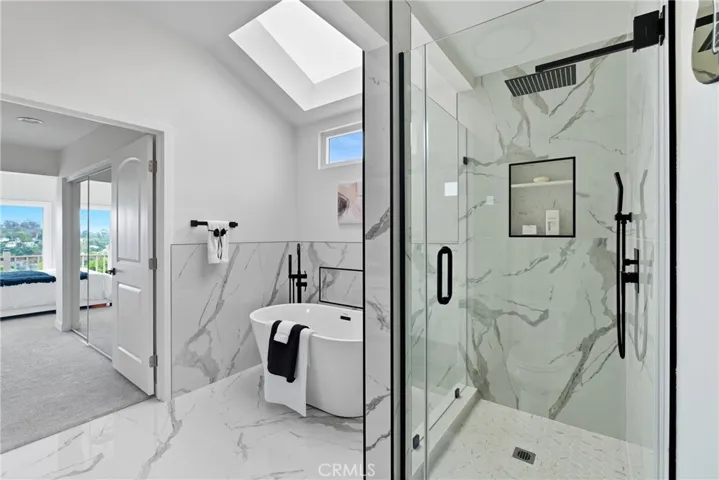 Inside, the home feels bright and open, with high ceilings, a cozy fireplace, and nice new floors. The kitchen is updated and has brand-new stainless steel appliances and quartz countertops, making it perfect for cooking and entertaining. Upstairs, the main bedroom has a relaxing bathroom, a walk-in closet, and a private balcony with amazing views. The home has skylight in the dining room area and pimary bathroom which brings a lot of natural light.