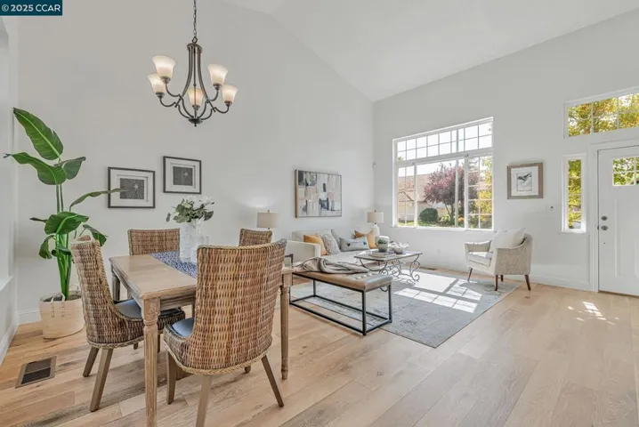 This beautifully updated home sits in a hidden gem of a neighborhood—nestled on a quiet, tree-lined street with serene mountain views and nearby walking paths. The location feels peaceful and tucked away, yet easy access to Ygnacio Valley Rd. Inside, the home features a bright, open layout with vaulted ceilings and abundant natural light throughout. The kitchen has been tastefully renovated with stainless steel appliances, quartz countertops, modern cabinetry, and a custom island with beverage refrigerator. Both bathrooms include updated vanities and granite countertops. Luxurious hardwood flooring flows from the living room through the kitchen, waterproof hardwood floors have been installed in the bathrooms, and brand-new carpet in the great room adds comfort. Additional upgrades include wide new baseboards and fresh interior paint. The private backyard backs to open space, creating a relaxing retreat with a soundtrack of music on summer nights. This move-in ready home has been impeccably maintained and shows like a model. A rare turnkey opportunity in a quiet, hidden-gem neighborhood—steps from music, nature, and convenience.