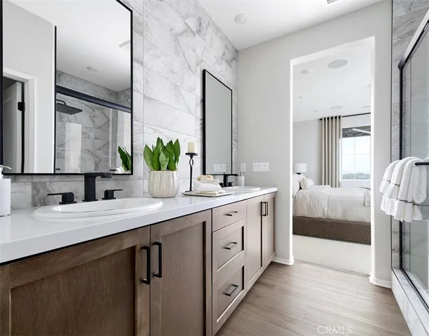 NEW CONSTRUCTION by Tri Pointe Homes in the heart Chino. TWO STORY Townhome with 2 Beds/2.5 Baths with Loft and an enclosed front courtyard and side x side 2 car garage. Fantastic location abutting a paseo and walkable to new Preserve Town Center and community pool/clubroom, pocket park. Home includes Stained Shaker cabinetry with dark pulls, polished Quartz kitchen + bath surfaces, additional recessed lighting, pendant light/ceiling fan prewire, SS GE appliances. Big things underway at Cedar Row in Chino with upcoming sports park, Legacy Academy School a short walk away and centralized access to 71, 91, 15, 60 commutes! Estimated move-in of November.