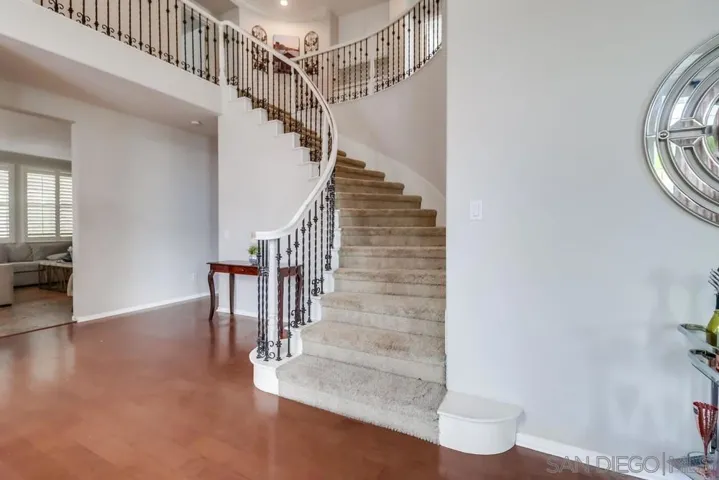 Rolling hills home with no MELLO ROOS!!! Offers 4 bedrooms, 3 baths and open loft. One bedroom is located on first level. Vaulted ceilings with wrought iron staircase. Crystal chandeliers at home entrance and formal dining room. Maple wood floors in loft, hallway and dining room. Remodeled kitchen with Wolf cooktop, LG Refrigerator, dishwasher and microwave. Double oven is original. Beautiful quartz counter top with white herringbone backsplash. Wood shutters throughout. Side to side patio with electric heaters. Perfect backyard for entertaining. BBQ island, Jacuzzi and fire pit. Coat closet was converted into Wine Storage. Master bedroom second closet with custom made shelving for shoes. Solar is leased and will be transferred to new owner.