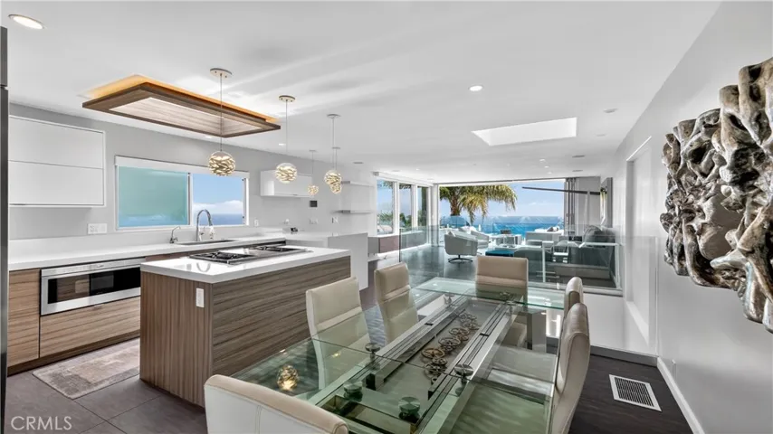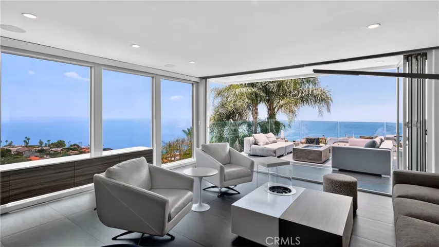 Fully furnished. Open to 6 months, month to month, short term- negotiable. Located at the end of a private cul-de-sac atop Arch Beach Heights, this striking split-level contemporary residence offers unobstructed 180-degree ocean and coastline views, with Catalina Island and twinkling city lights stretching beyond Laguna Beach, visible from nearly every room. Set on an exceptionally rare double-wide lot, the home spans nearly 2,350 square feet and features 4 bedrooms, 3.5 baths, a dedicated office (optional 4th bedroom), a private theater, and a custom wine room. Originally reimagined in 2007 by acclaimed designers Anders Lasater and Mark Singer, the home blends bold design with timeless quality. The spacious primary suite includes a custom-built closet system and an expansive spa-like bathroom complete with a steam shower, soaking tub, and a built-in TV for the ultimate retreat. Upstairs, the main living area boasts an open-concept layout with hardwood and stone flooring, a chef’s kitchen with stainless steel appliances—including a Bosch ultra-quiet dishwasher—cherry wood cabinetry, granite counters, skylights, a breakfast bar with a mini-fridge, and a center island cooktop. Sliding doors lead to both front and rear decks, seamlessly extending the living space outdoors. This exceptional property offers the rare combination of architectural sophistication, functional design, and breathtaking natural beauty. Just moments from world-class beaches, hiking trails, restaurants, and vibrant village life, this home is not only a peaceful retreat but also a gateway to the very best of coastal living. Whether you’re entertaining guests or enjoying a quiet evening overlooking the Pacific, this one-of-a-kind residence delivers an unparalleled lifestyle experience.
